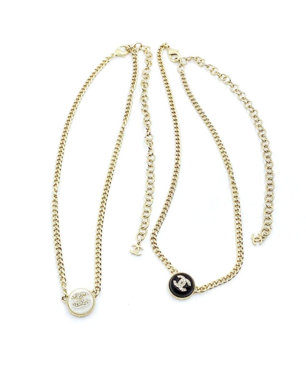 Chanel Logo CC Necklace In Gold Metal & Silver Resin