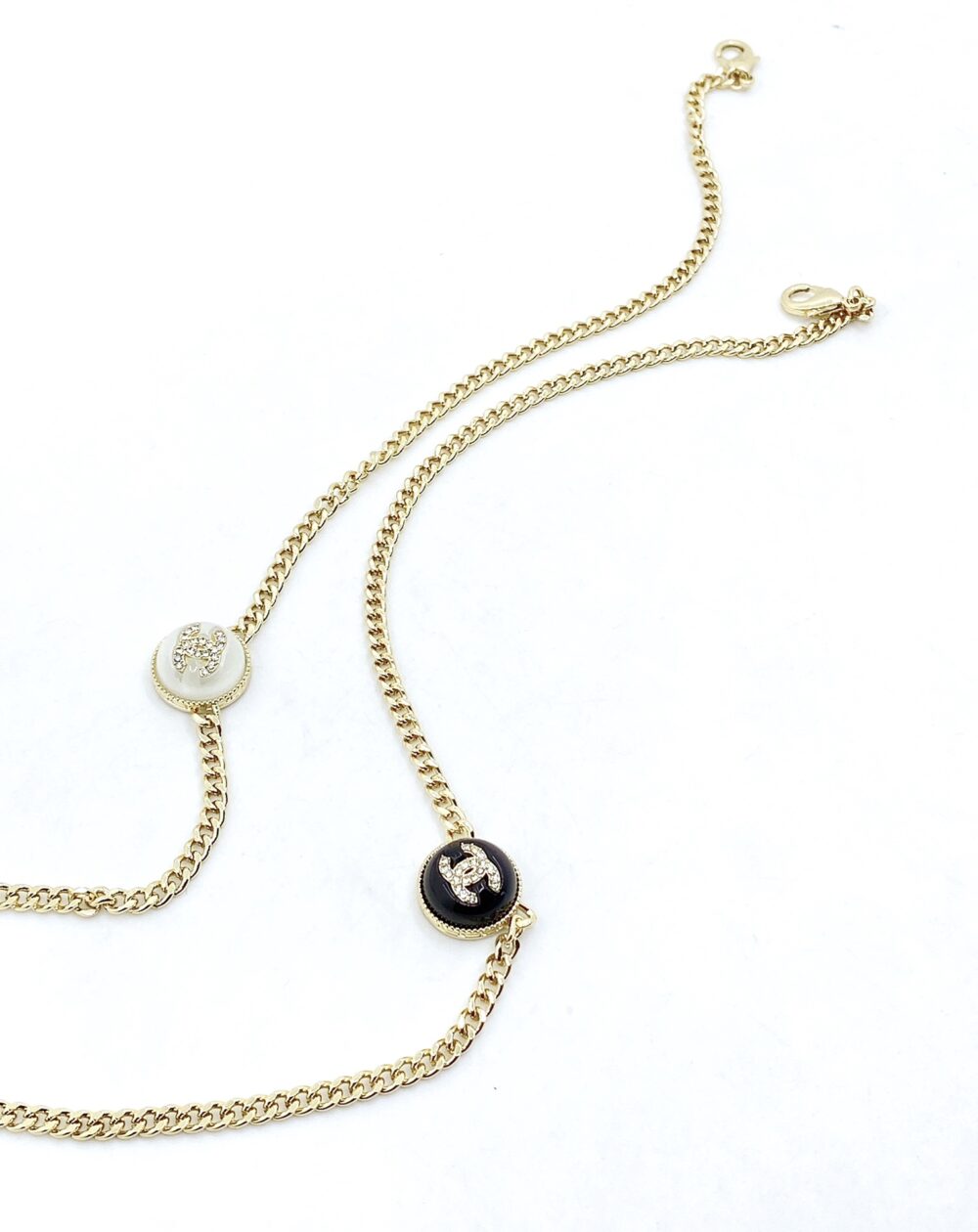 Chanel Logo CC Necklace In Gold Metal & Black Resin