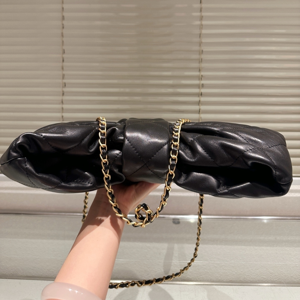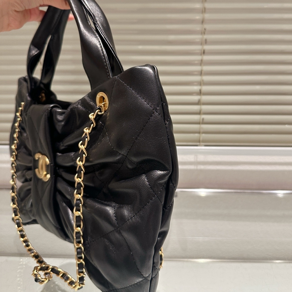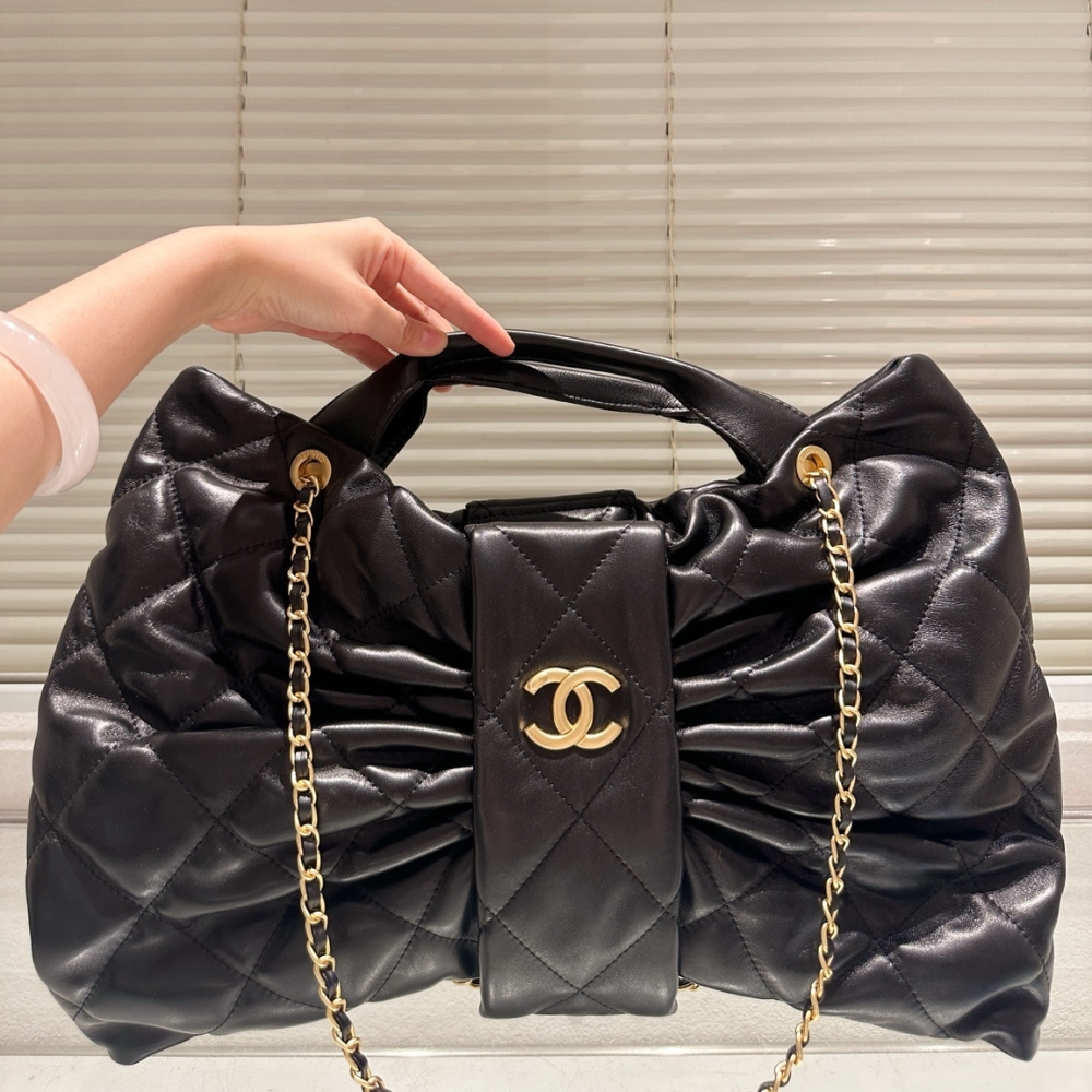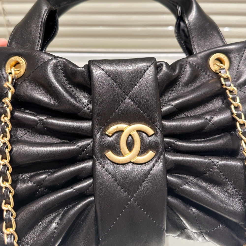 Chanel Maxi Bow Bag Shiny Black / 20.1 x 15.0 x 10.2 inches / Gold Tone Metal / Fit Daily Essentials / Travel Bags
