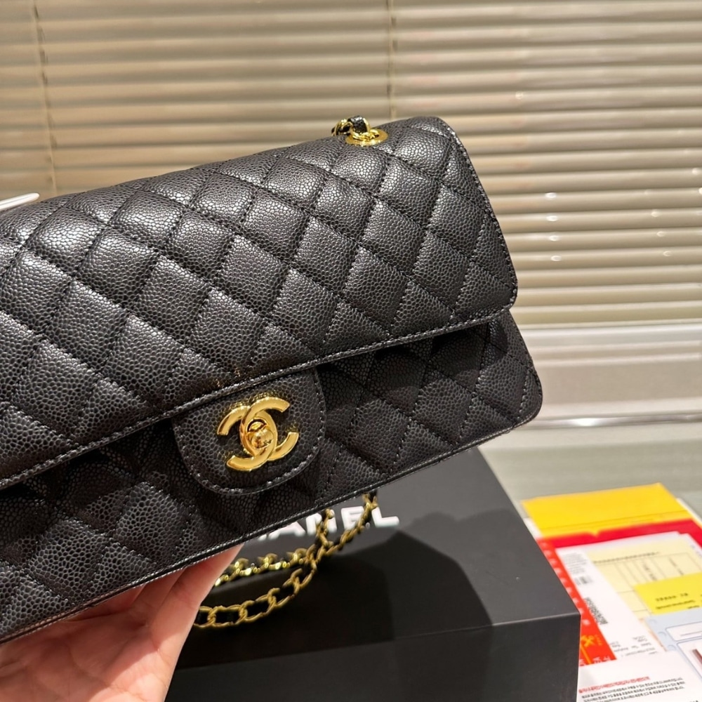 Chanel Medium Classic Handbag Grained & Gold-Tone Metal Black A01113 Y01864 C3906 / 26Cm / 10.2 inches
