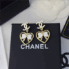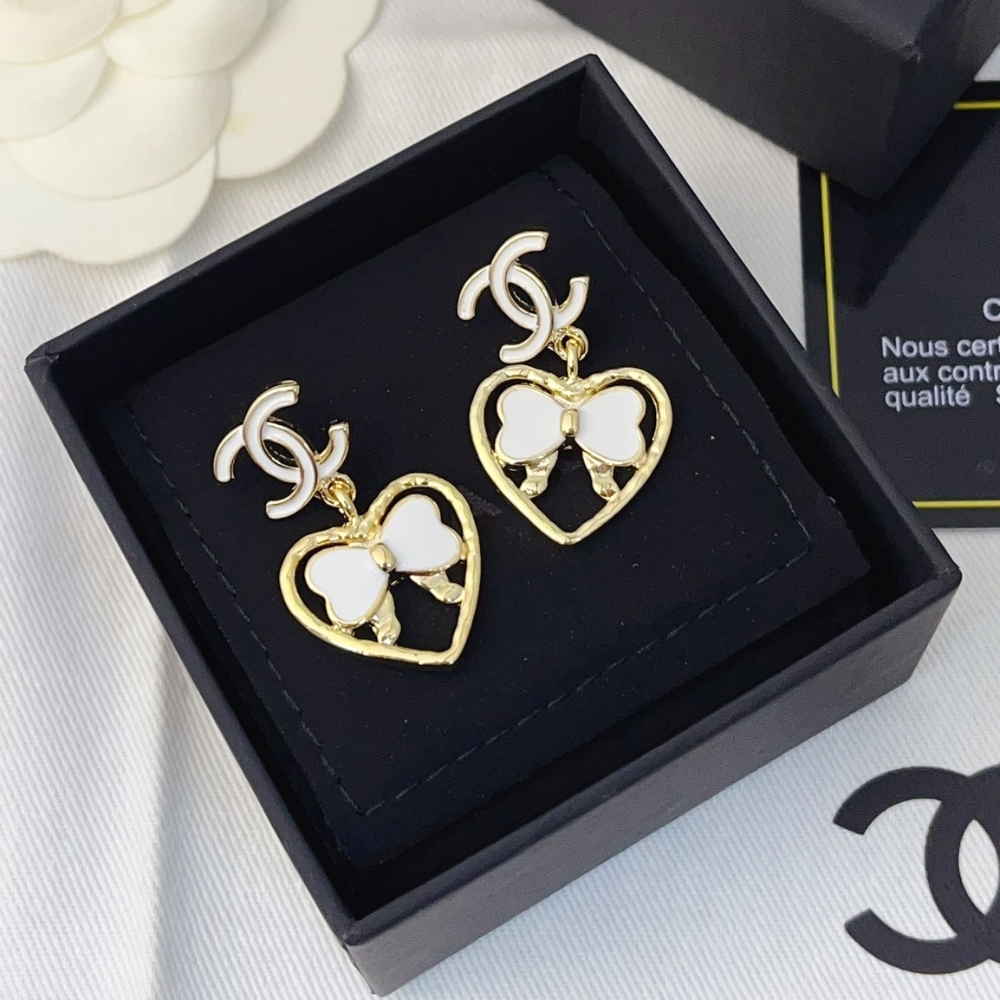 Chanel Metal Enamel CC Earrings / Heart Drop / Gold Metal / Fit Daily Essentials / Luxury Jewelry