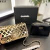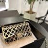 Chanel //Metallic Diamond Lined Black Leather Chain Flap Bag //Gold //18cm