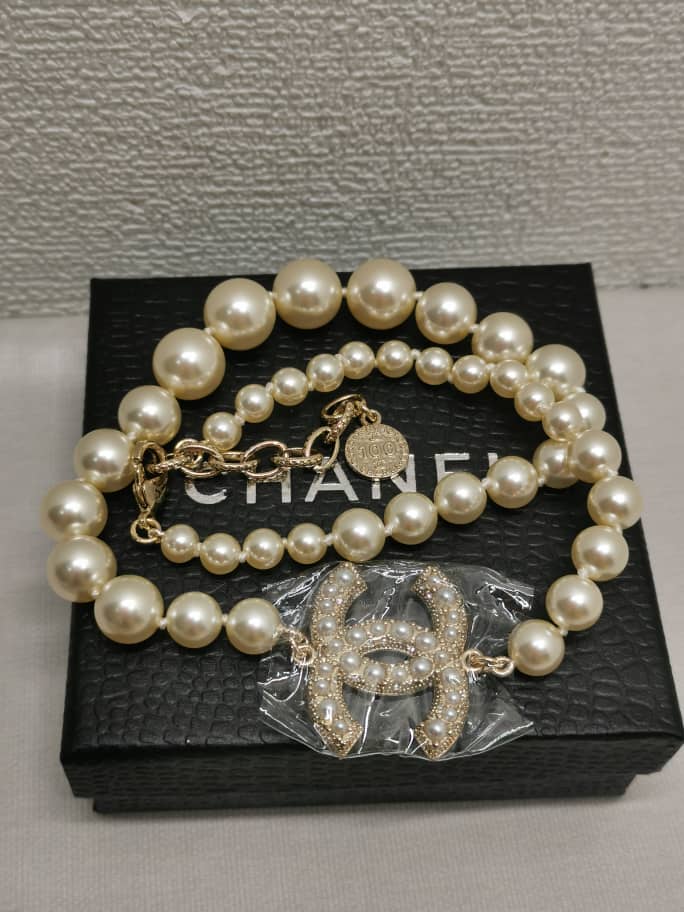 Chanel Women’s Metallic Silver-tone Coco Faux Pearl Cc Necklace