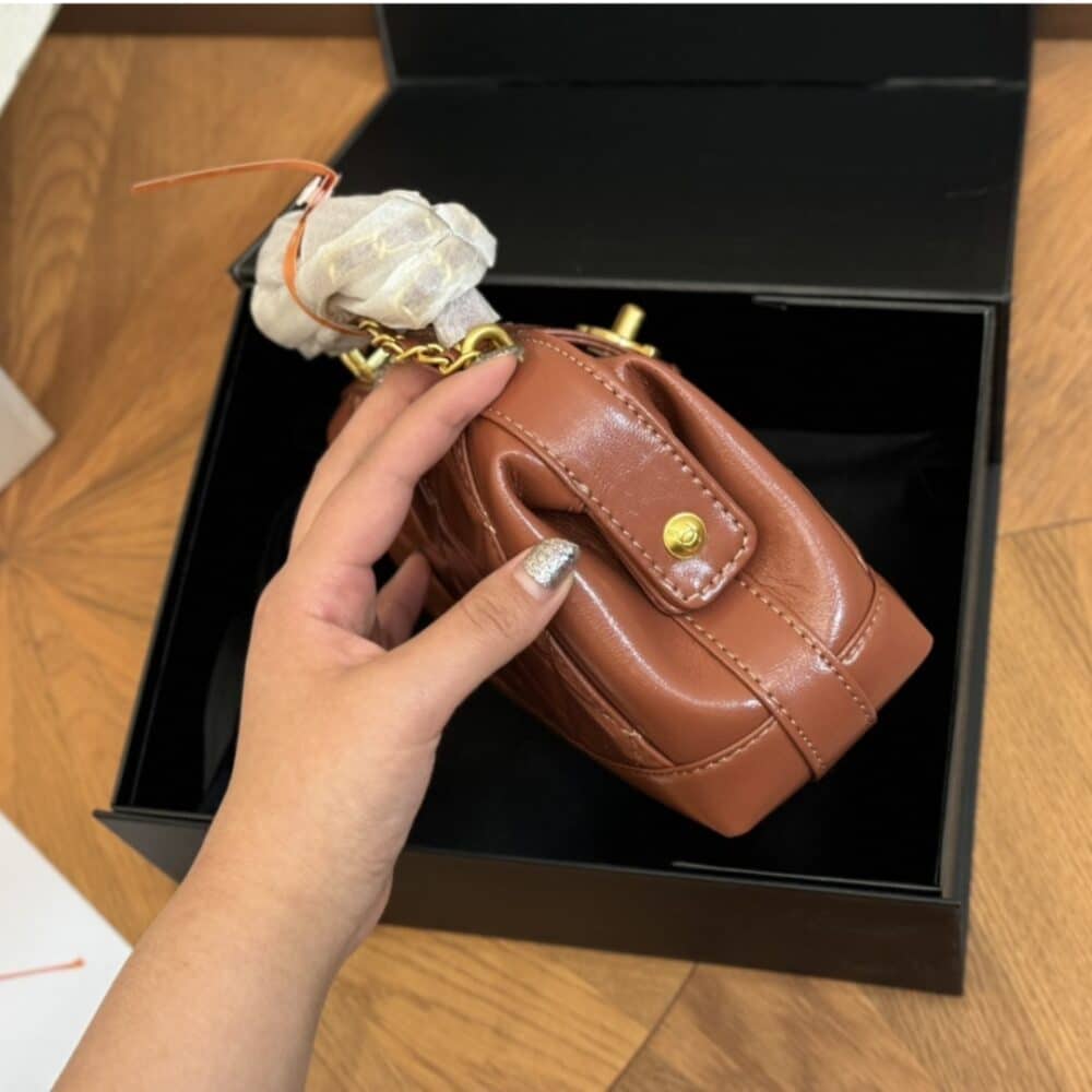 Chanel Mini Bag With Top Handle Shiny & Gold Tone Metal Brown AS4958 B16872 NY562 / 19cm / 7.5in