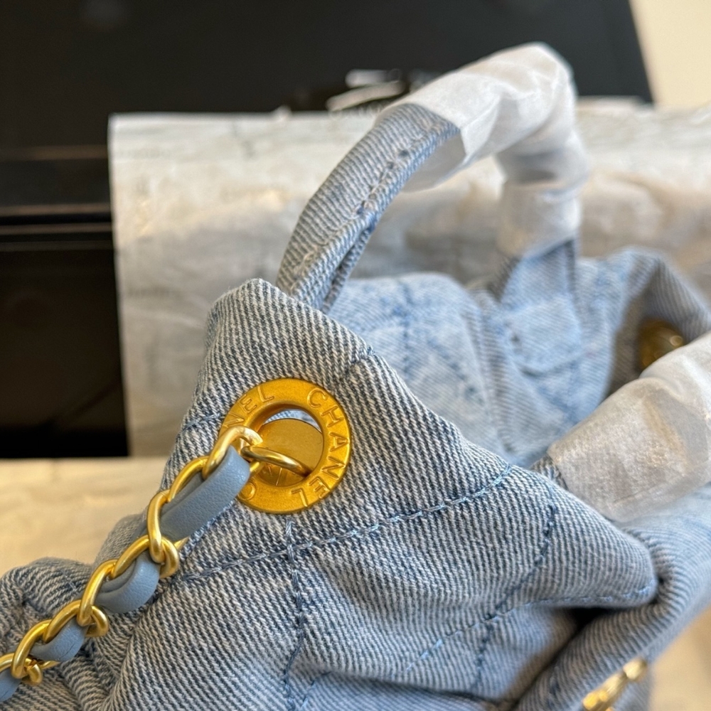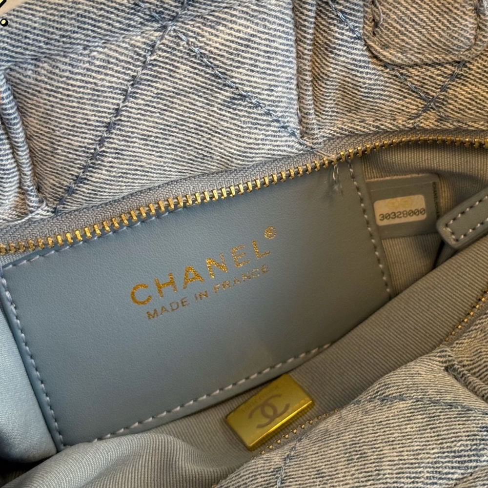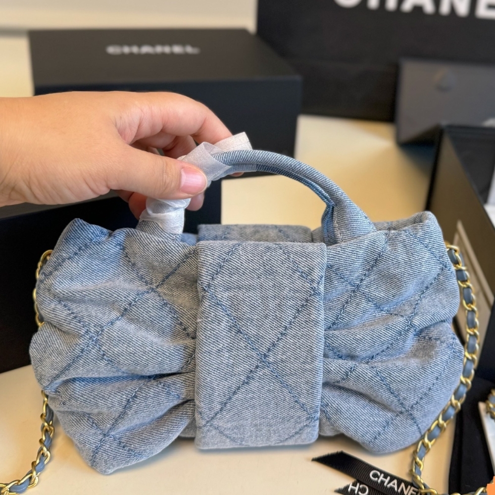 Chanel Mini Bow Bag Denim Blue / 8.3 x 4.7 inches / Gold Tone Metal / Fit Daily Essentials / Daily Bags