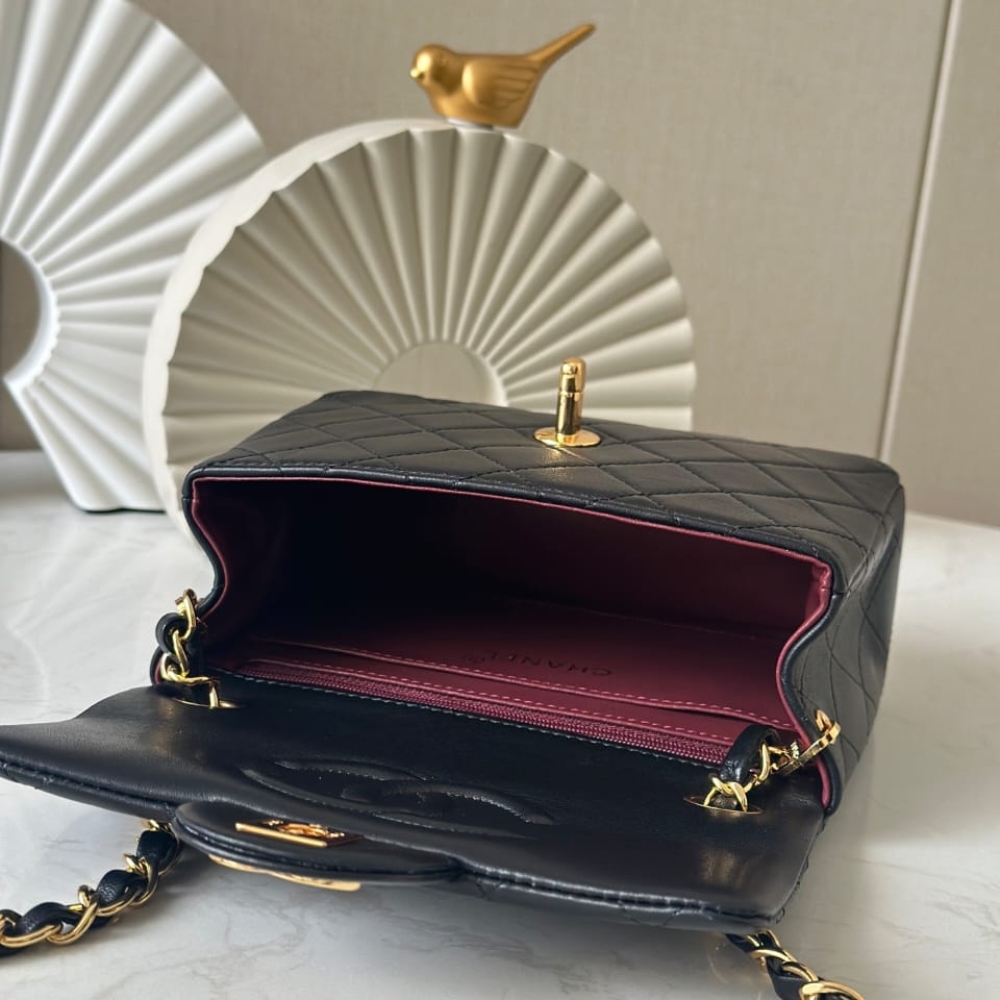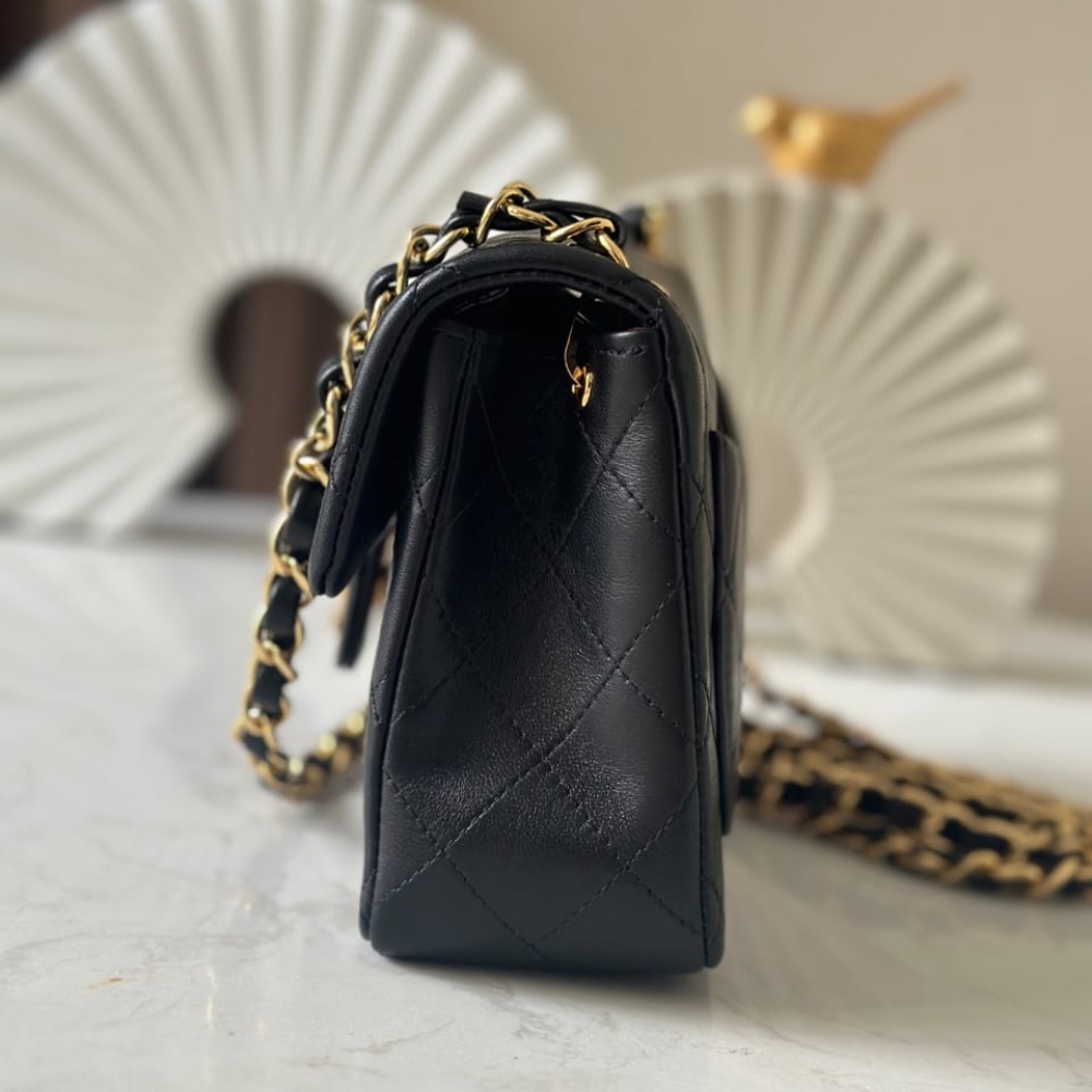 Chanel Mini Classic Handbag / Black / Gold Tone Metal / 6.9 inches / Elegant Style / Daily Bags / For Women