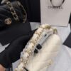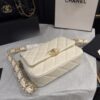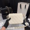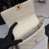 The Chanel Mini Flap Bag in white crafted from luxurious quilted leather with elegant gold-tone hardware. This sophisticated piece features a wide, interlaced chain-and-leather strap that adds a modern touch to the classic fold-over silhouette. Secured by the iconic CC turn-lock closure, its compact yet practical design makes it a versatile choice for seamless transition from day to evening wear.