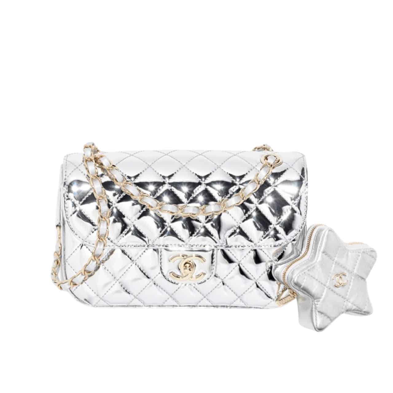 Chanel Mini Flap Bag Star Coin Purse Silver / 9.4 inches / Silver Metal / Fit Daily Essentials / Daily Bags