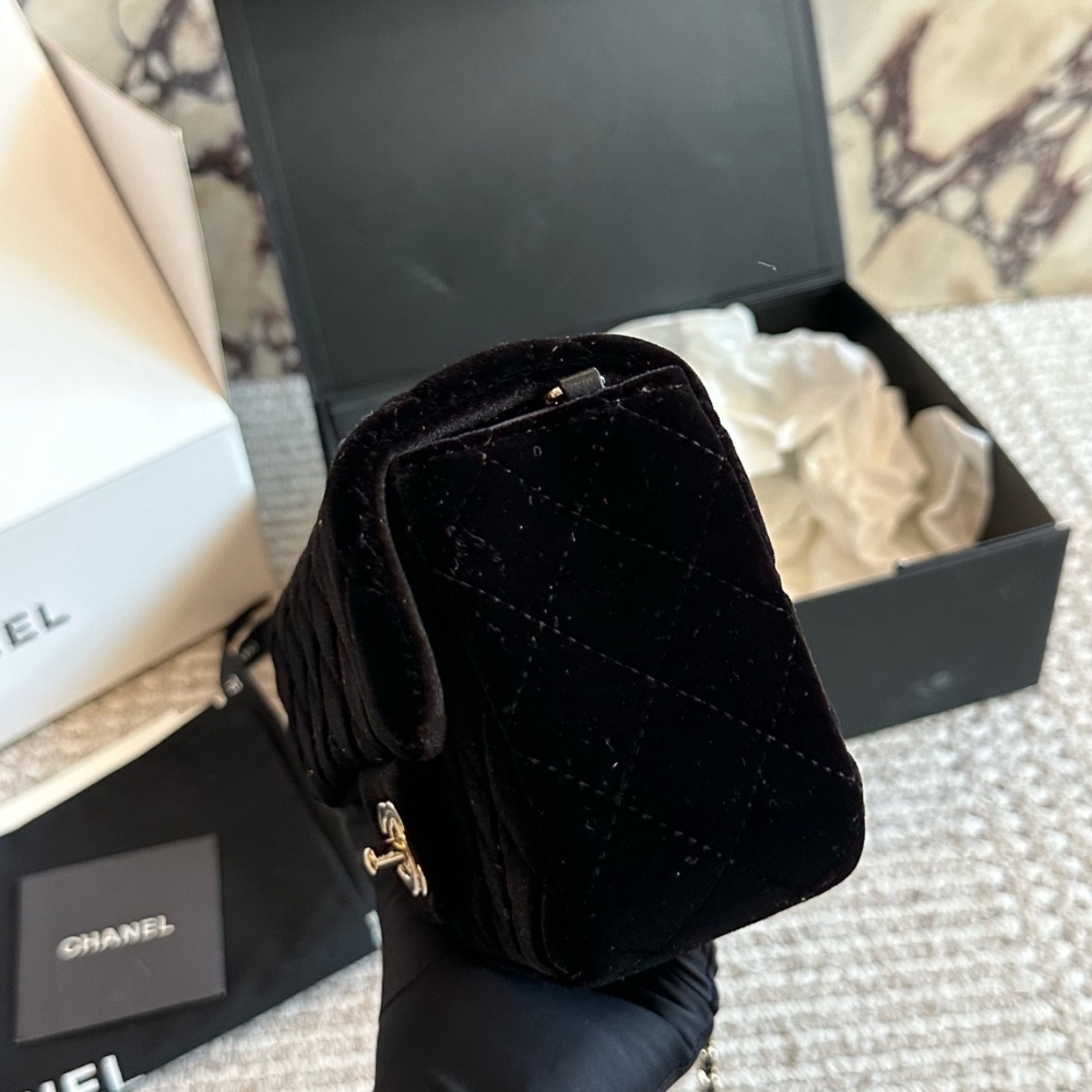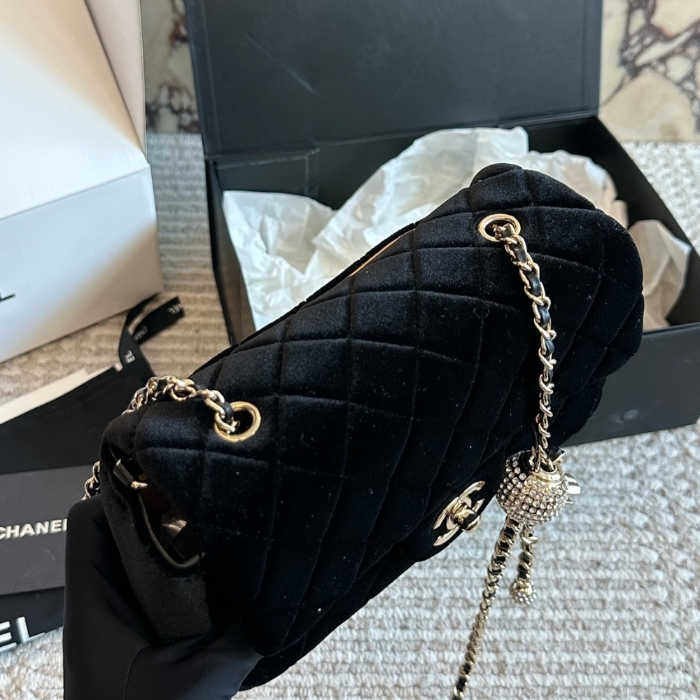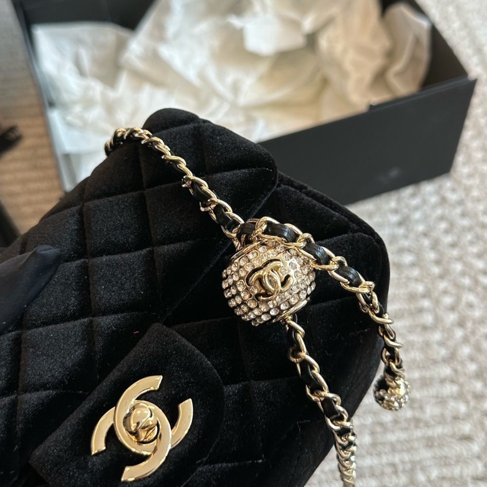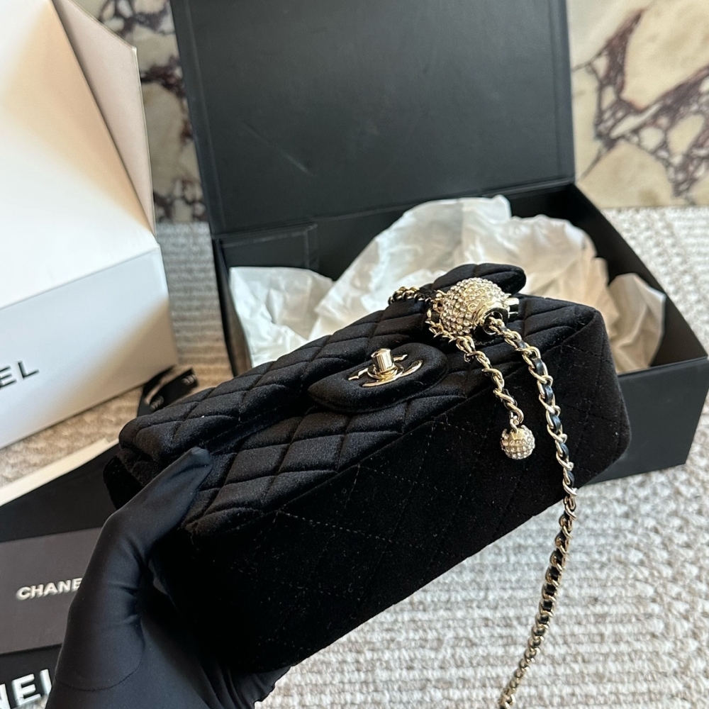 Chanel Mini Flap Bag Black / Velvet Diamante / 7.9 inches / Gold Tone Metal / Elegant Style / Daily Bags