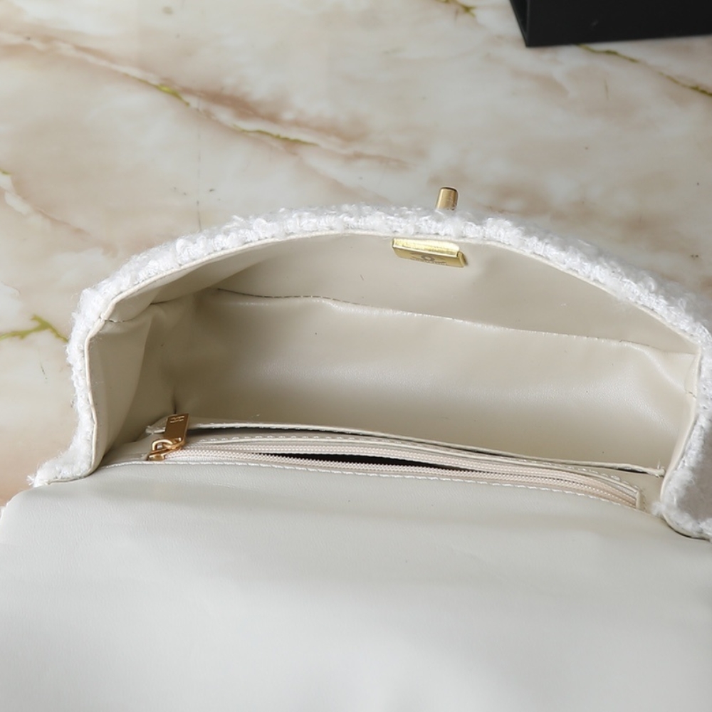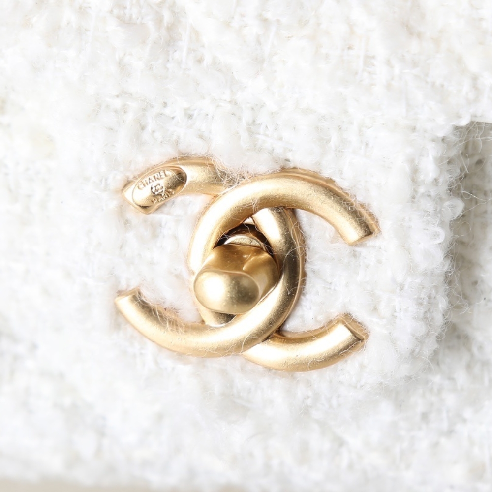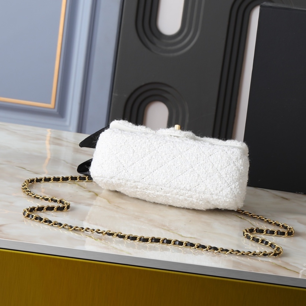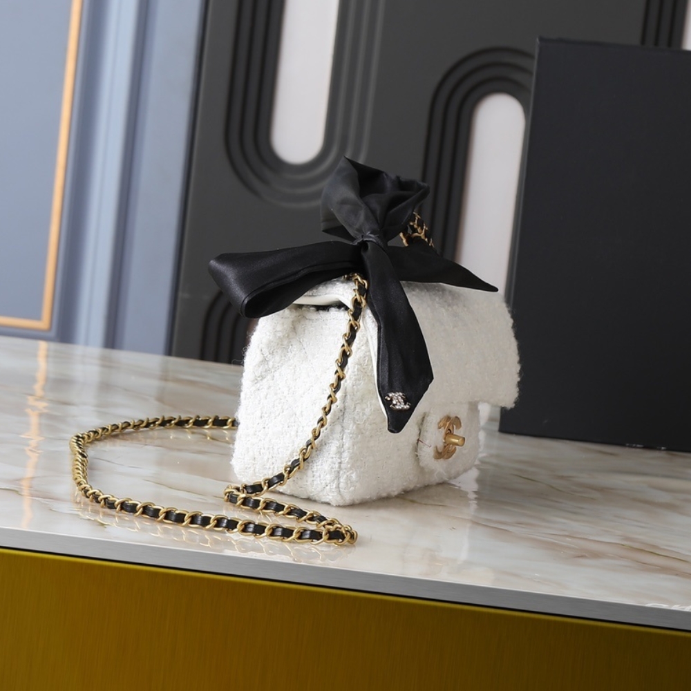 Chanel Mini Flap Bag White / Velvet Silk / 7.9 x 5.1 x 2.4 inches / Gold Tone Metal / Elegant Style / Daily Bags