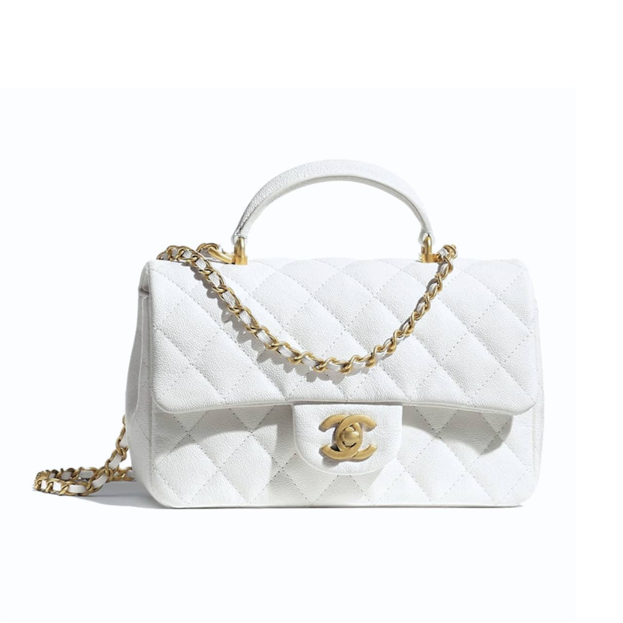 CHANEL MINI FLAP BAG WITH TOP HANDLE WHITE 20CM AS2431