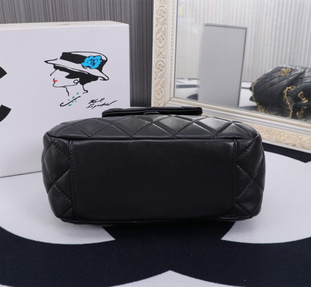 CHANEL MIX ACCORDION CC FLAP BAG QUILTED GLAZED CALFSKIN BLACK 23CM