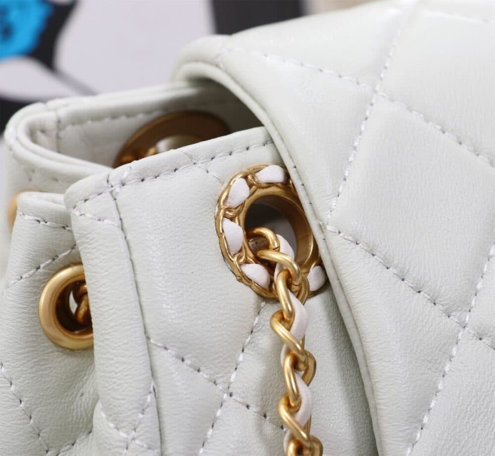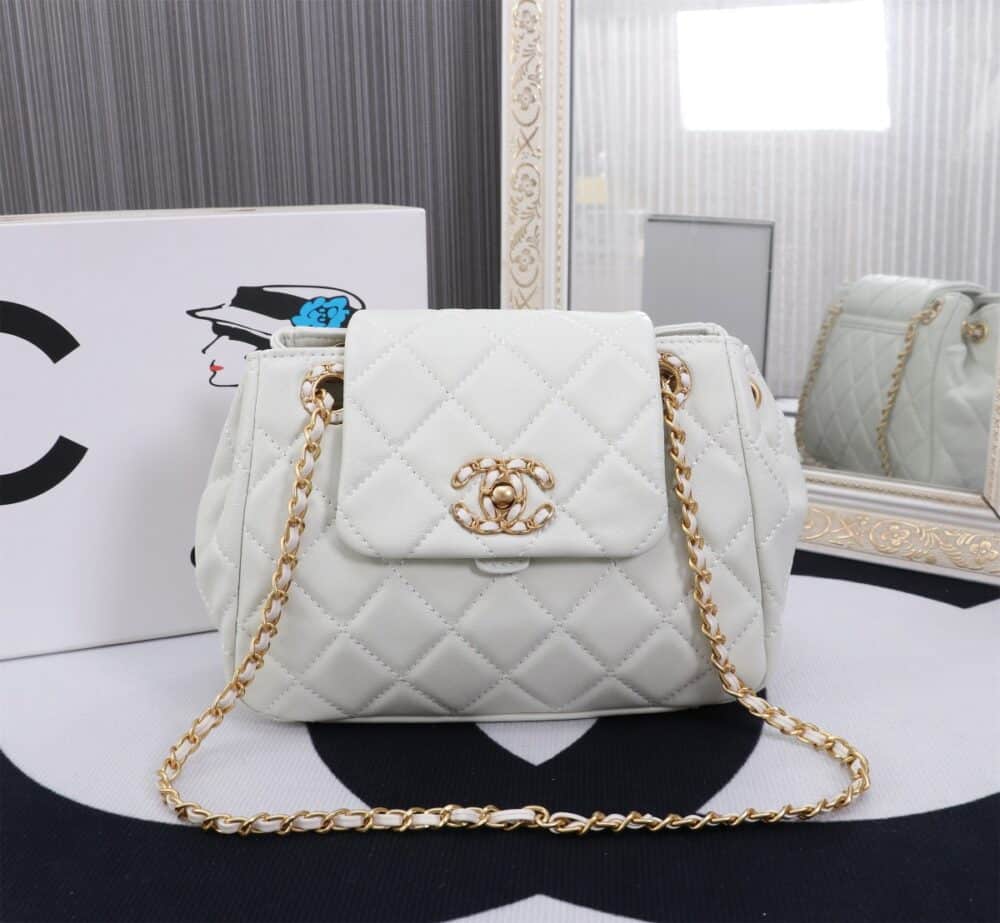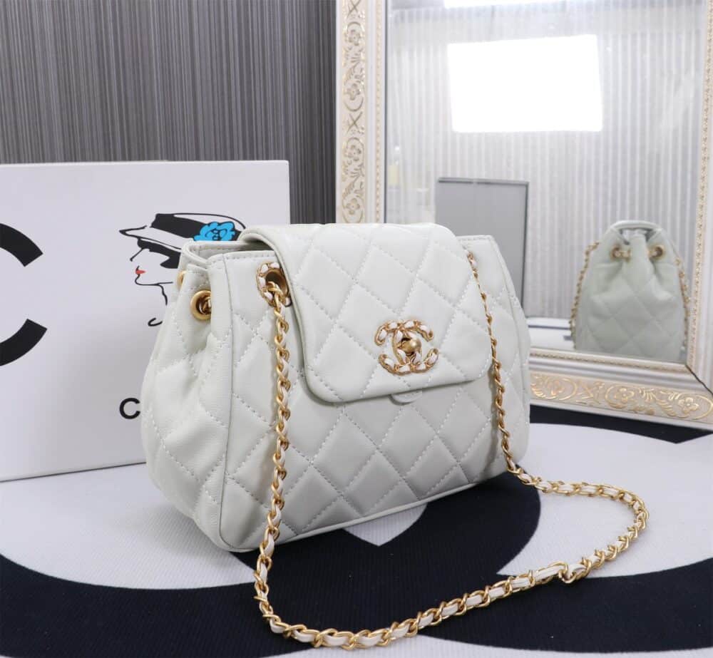 Chanel //Mix Accordion Cc Flap Bag Quilted Glazed Calfskin //White //23cm