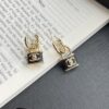 Chanel Padlock Drop Earrings / Black Enamel / Gold metal / Fit Daily Essentials / Party Jewelry