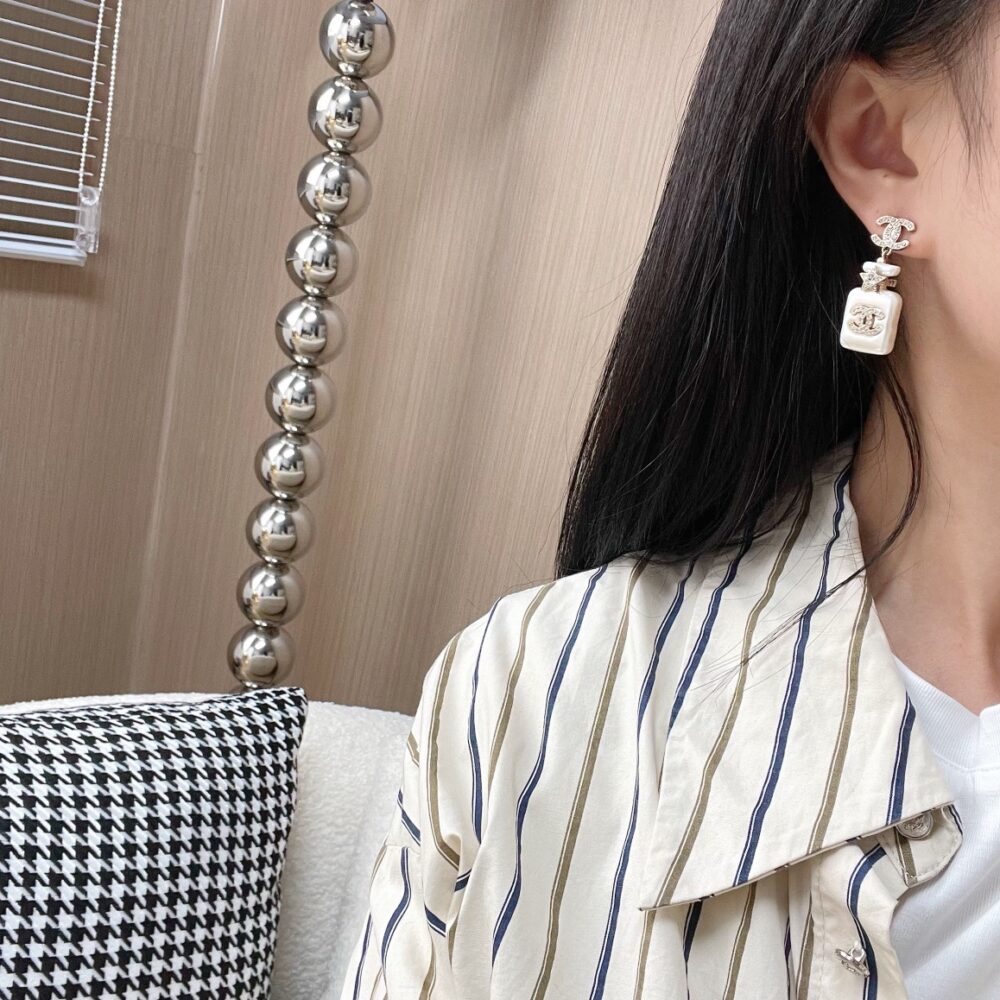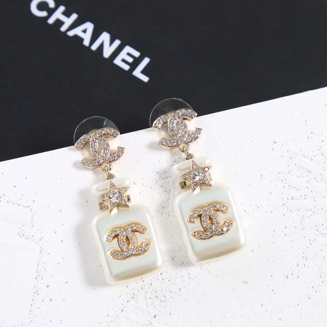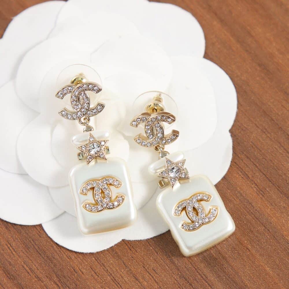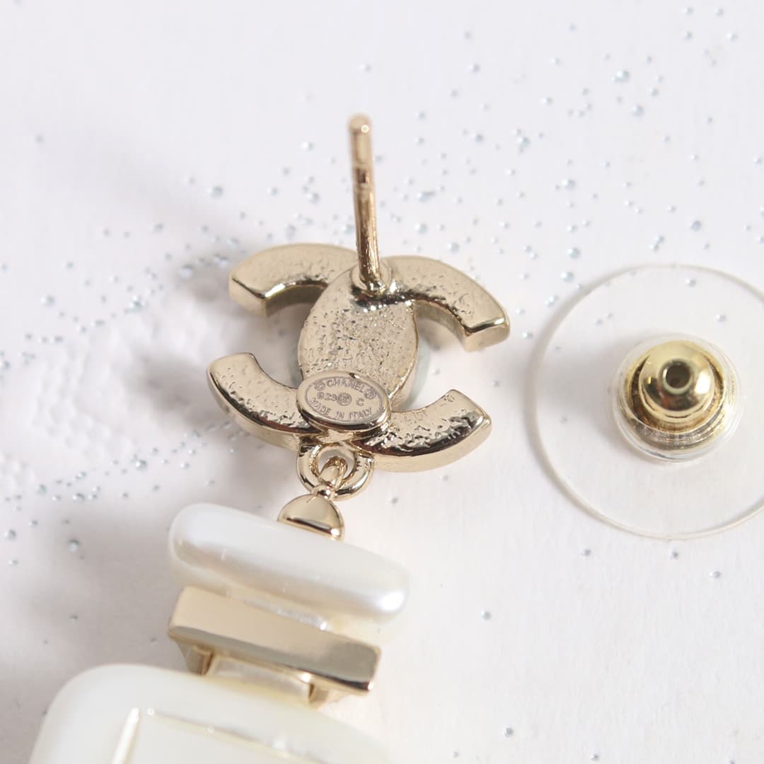 Chanel Pearl Resin Crystal CC Perfume Bottle Drop Earrings