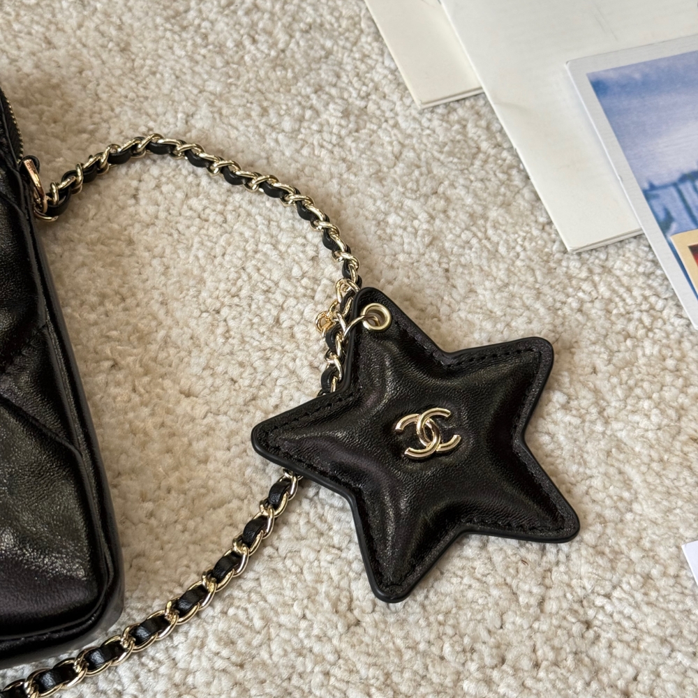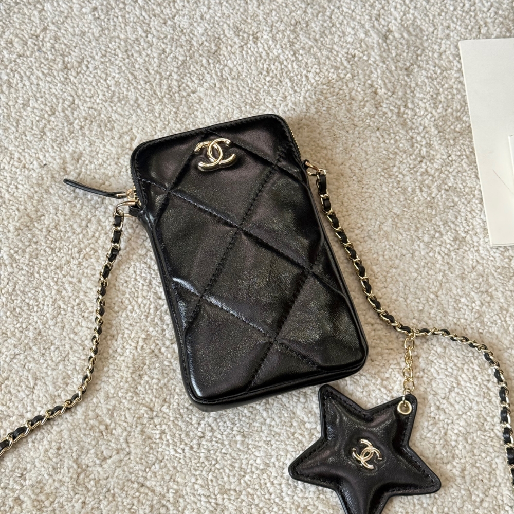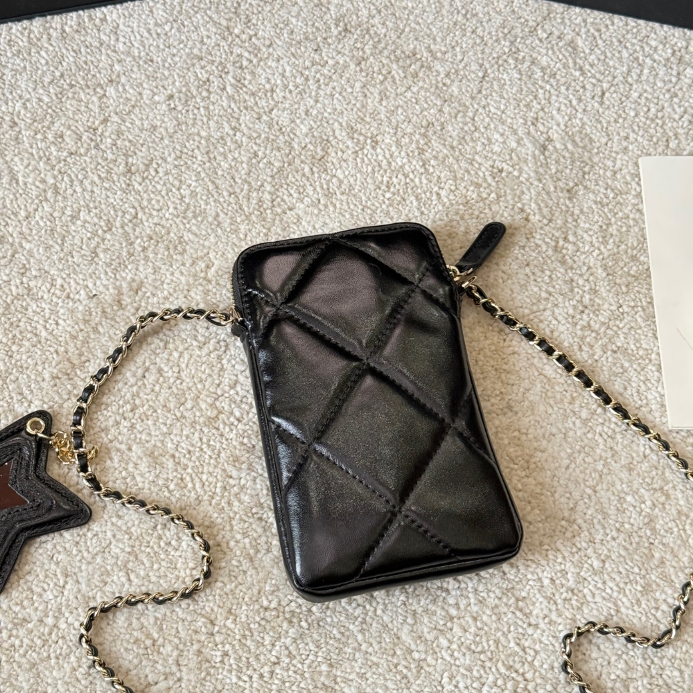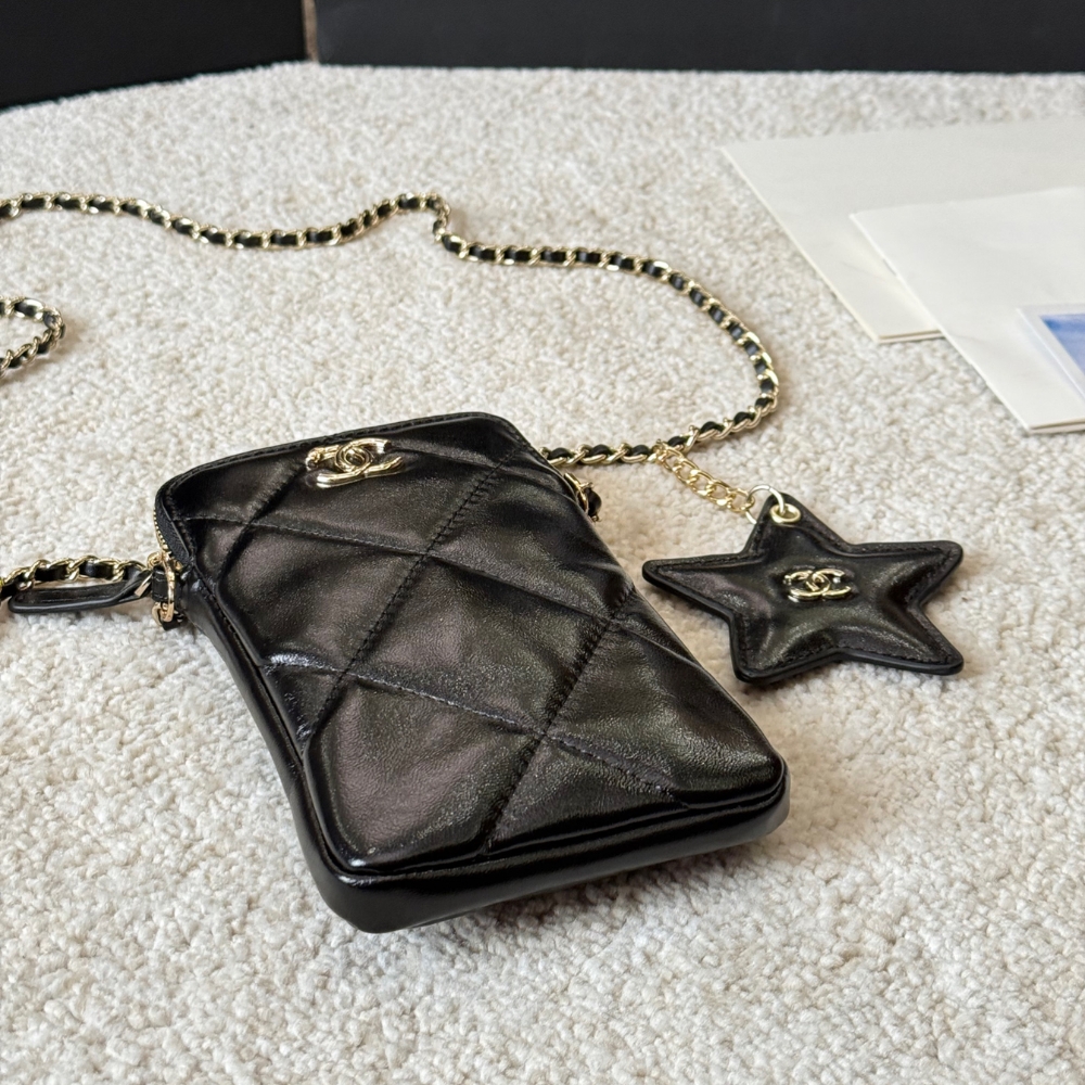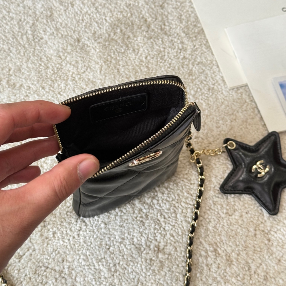 Chanel Phone Holder With Chain Black / 4.3 x 0.6 x 7.1 inches / Velvet-Effect Nylon / Fit Phone / Daily Bags