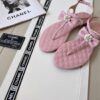 CHANEL PINK QUILTED LEATHER WITH WHITE CAMELLIA CC LOGO BOW THONG SANDALS
