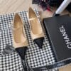 CHANEL POINTED TOE DOLL SHOES WITH GOLD FLOWER IN BEIGE