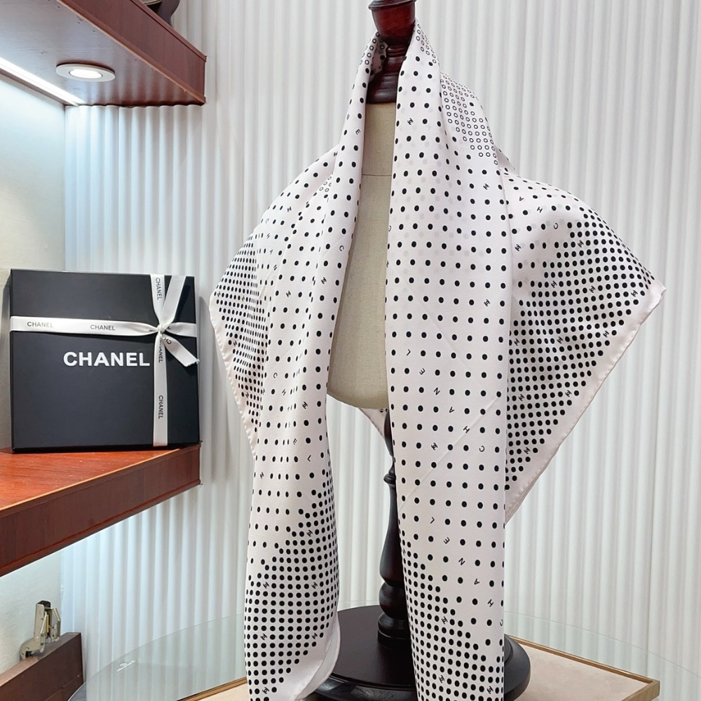 CHANEL POLKA DOT PATTERN SILK SCARF IN WHITE 90CM