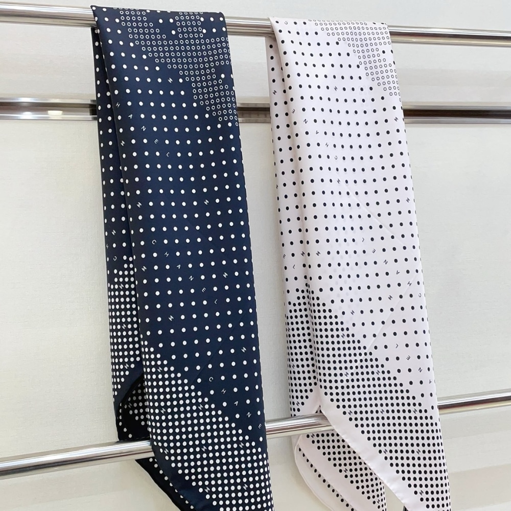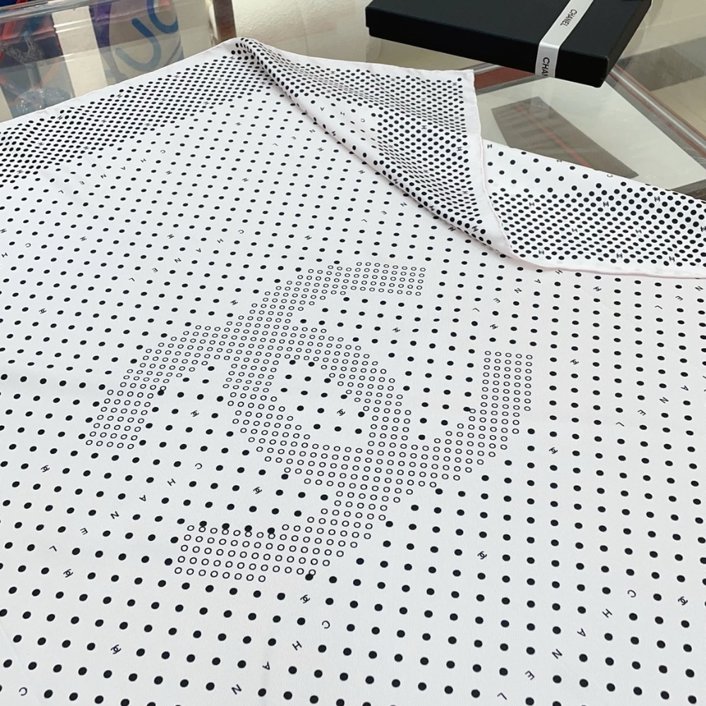 Chanel Polka Dot Pattern Silk Scarf In White 90cm