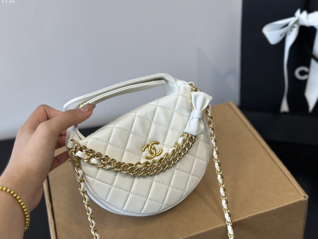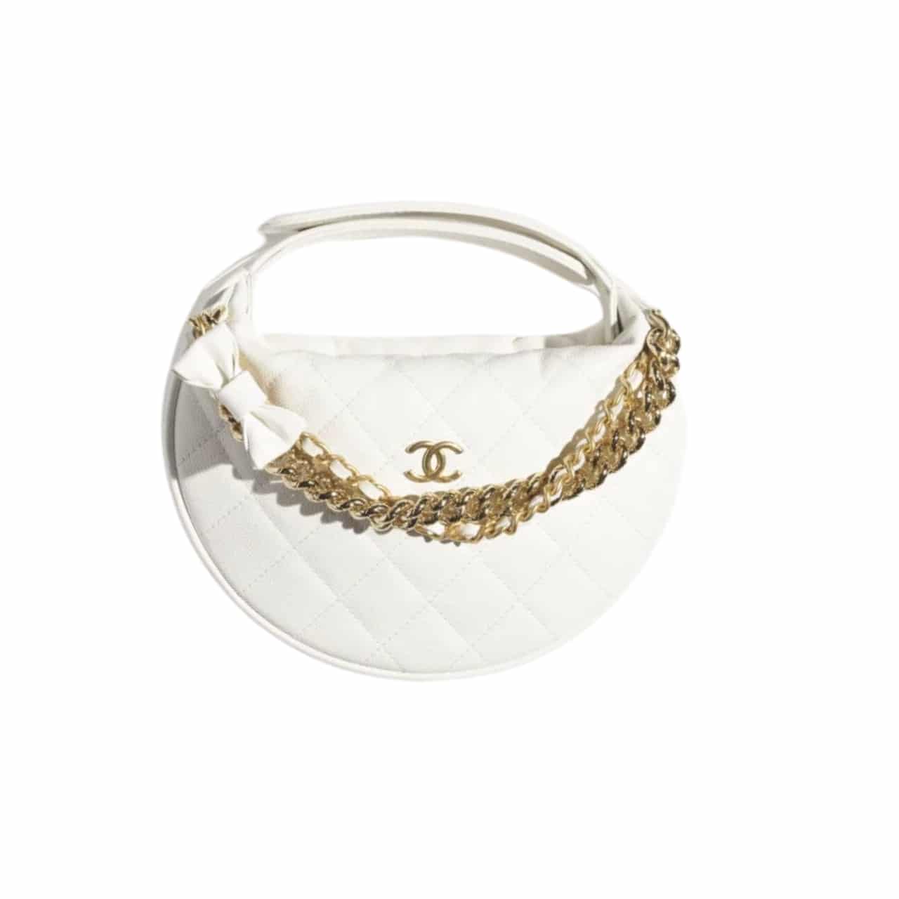 Chanel //Pouch Grained Shiny Calfskin //White//17cm