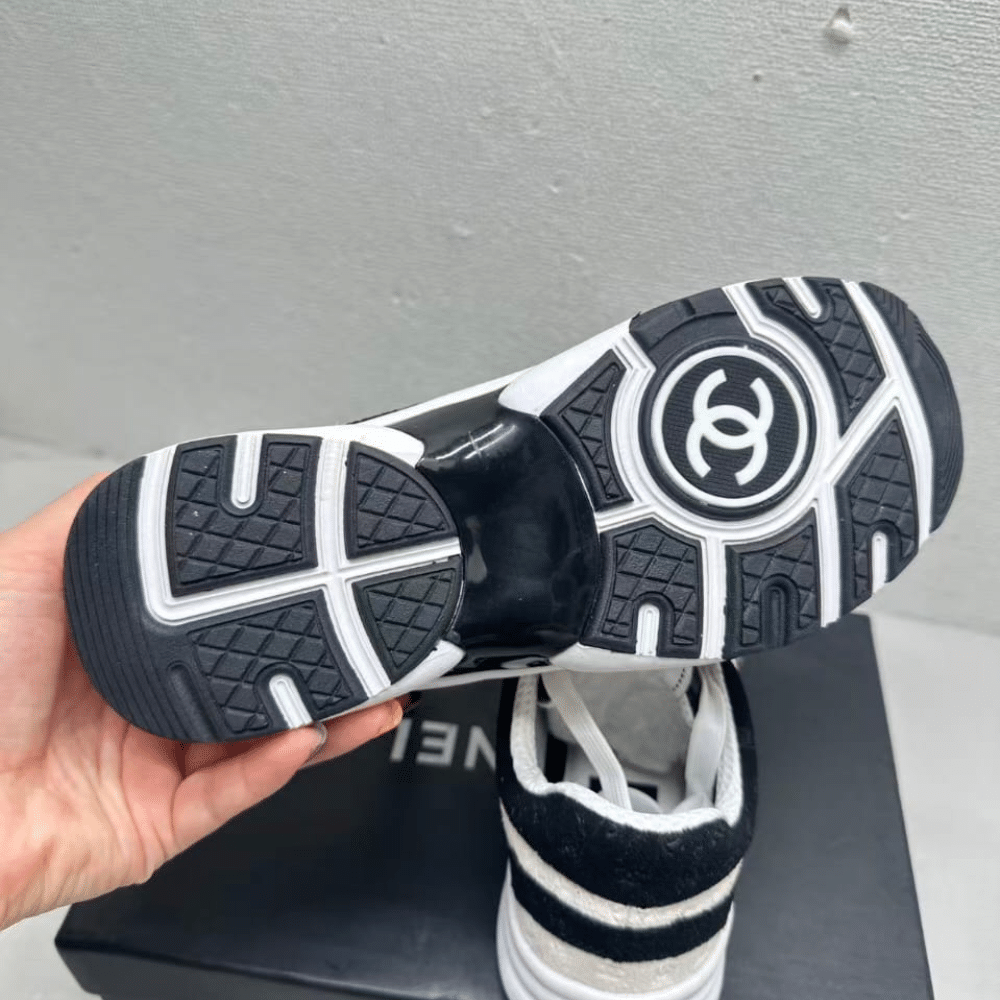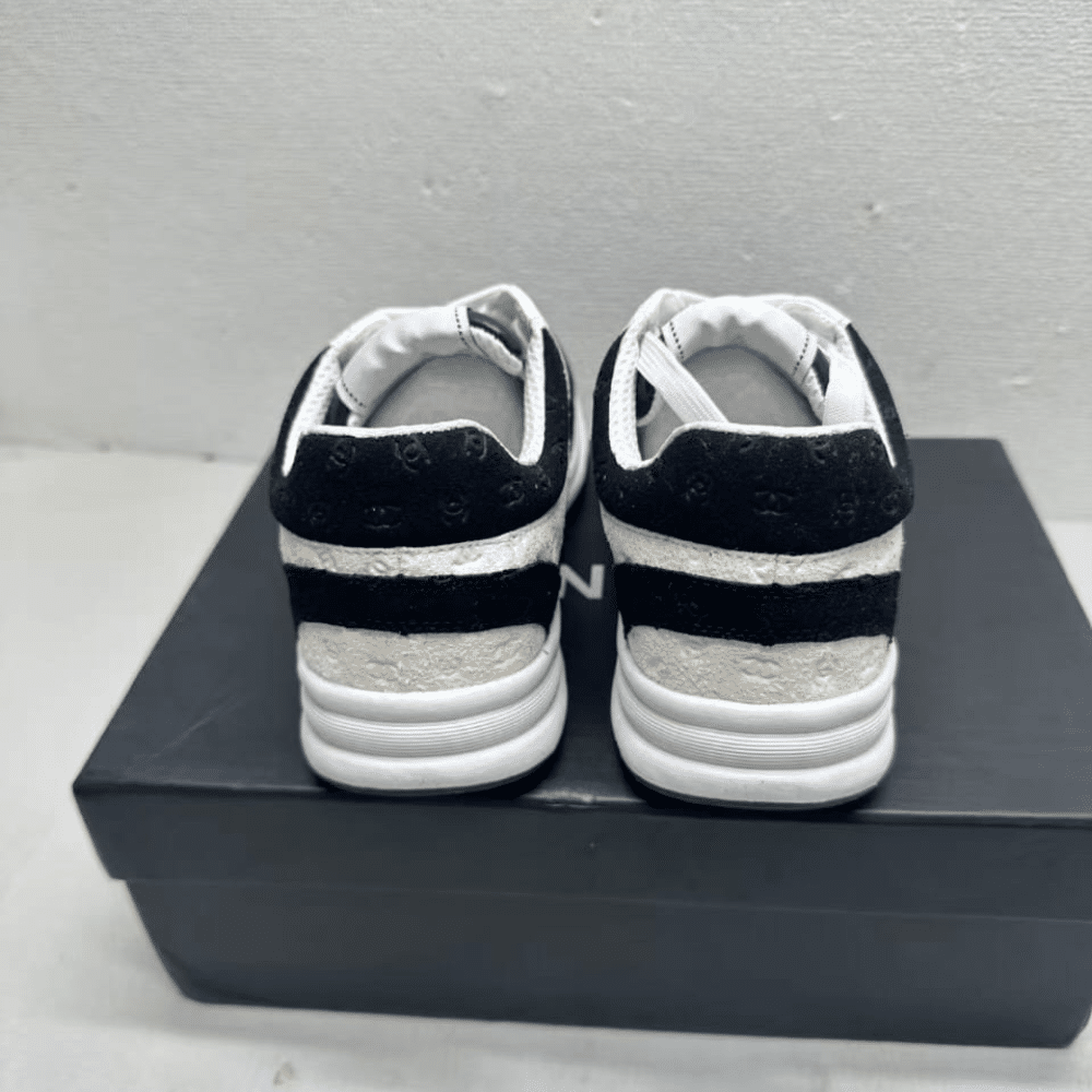 CHANEL PRINTED SUEDE SNEAKER WHITE AND BLACK G39230 X56689 K4718