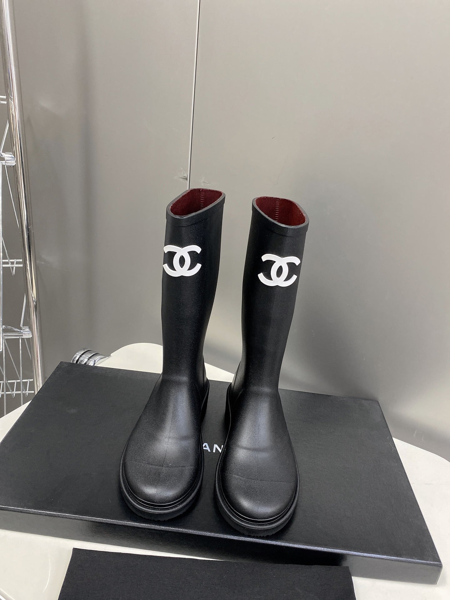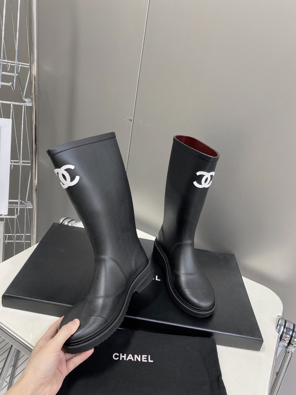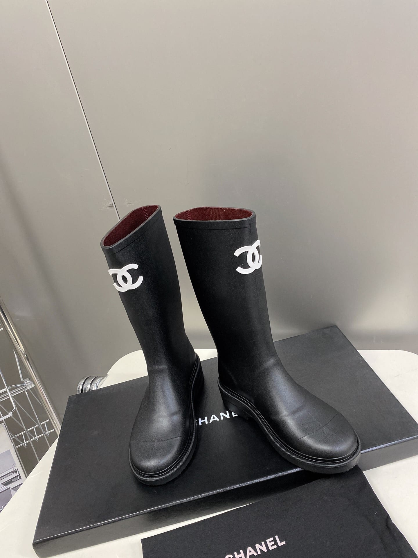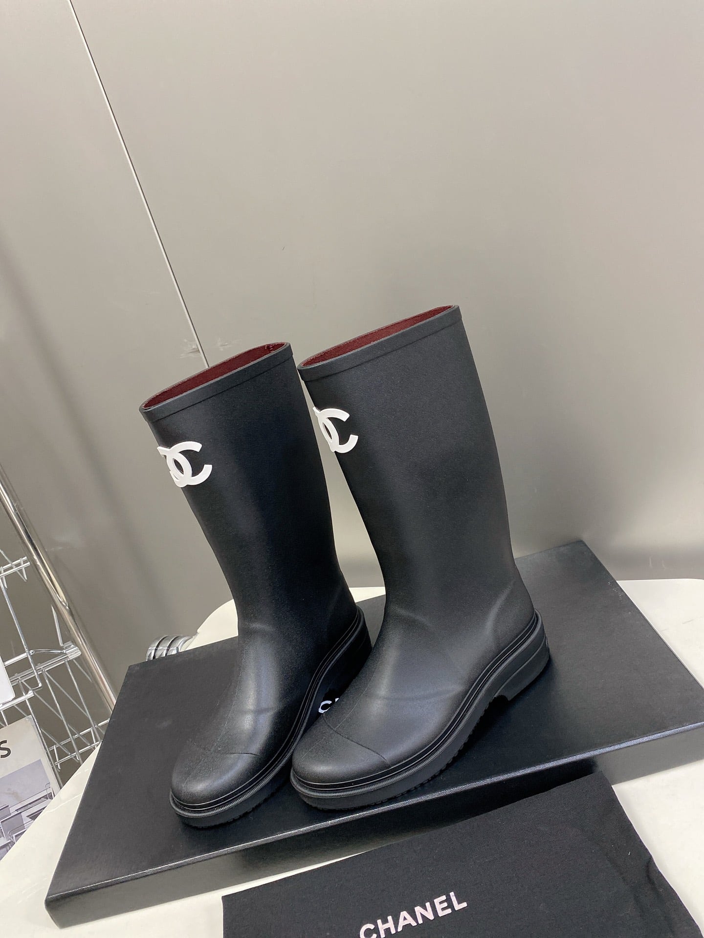 CHANEL RUBBER RAIN BOOTS BLACK G39620 X56326 94305