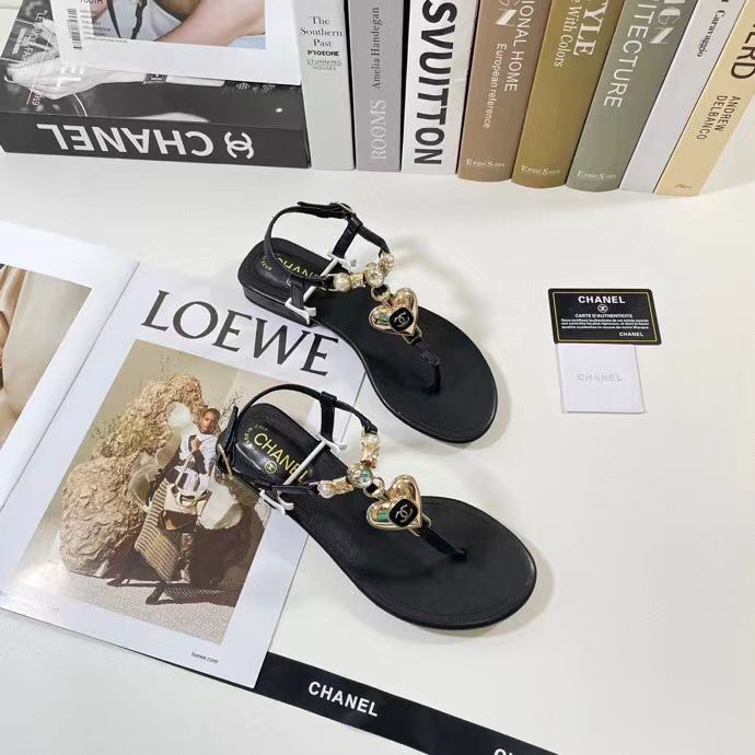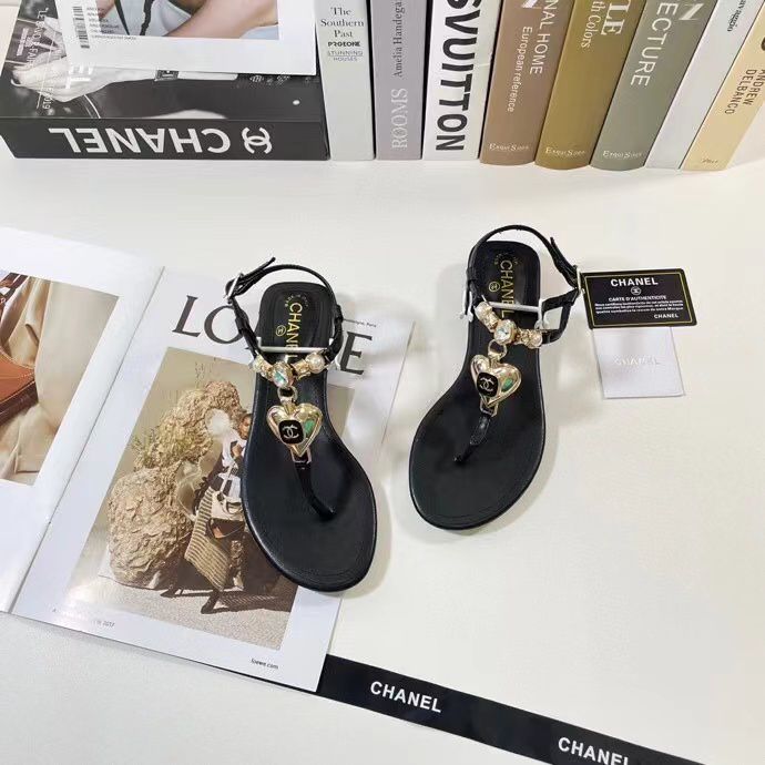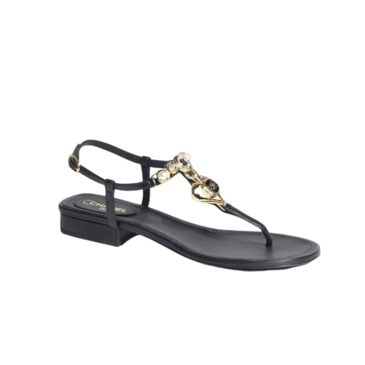 CHANEL SHINY PEARL CRYSTAL CC HEART THONG SANDALS BLACK G39674 X01000 94305
