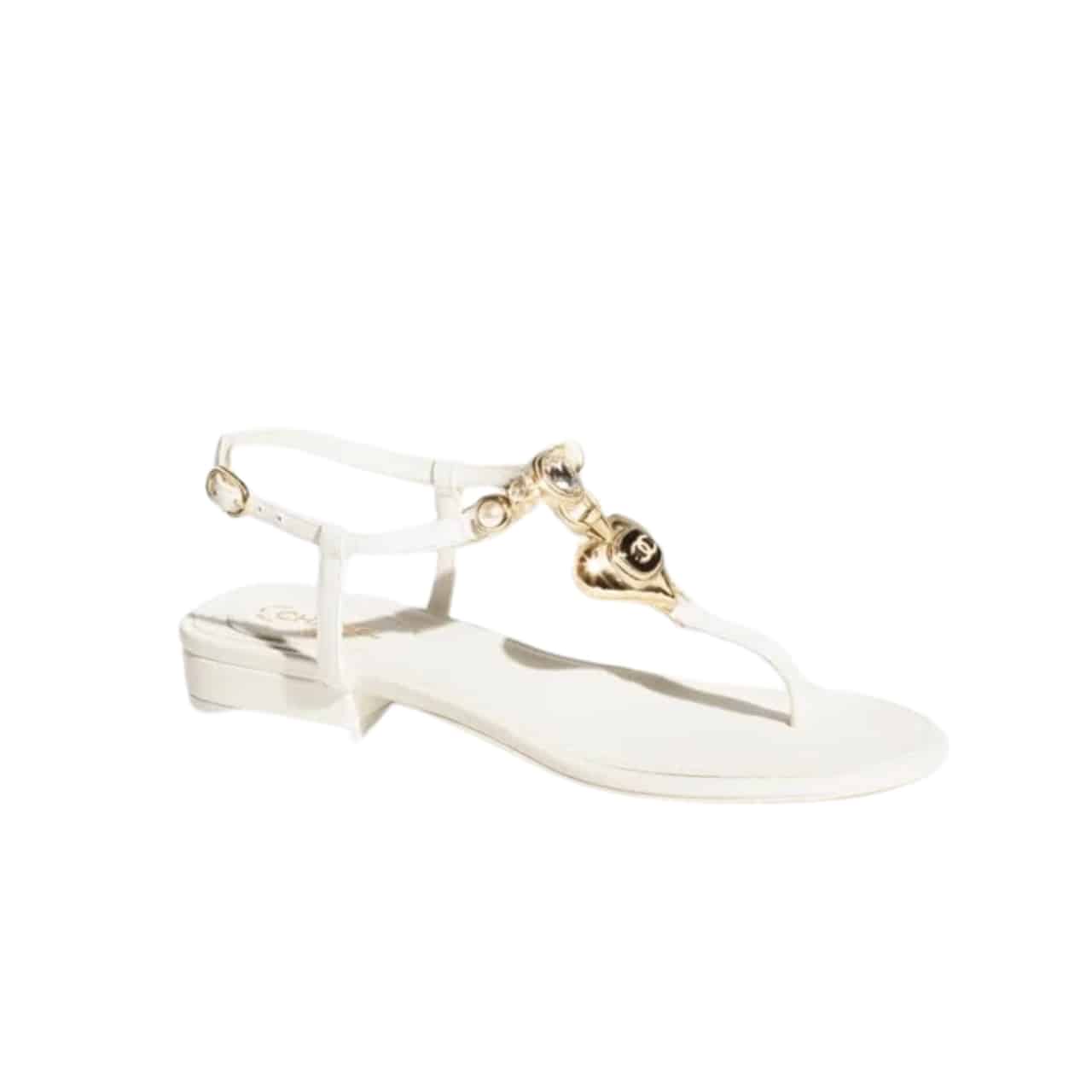 CHANEL SHINY PEARL CRYSTAL CC HEART THONG SANDALS WHITE G39674 X01000 0S082