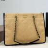 Chanel Shopping Bag Natural Straw Beige 39Cm / 15.3 x 11.4 inches / Luxury Fashion / Bronze Tone Logo / Chic Style / Can use as Tote Bag