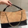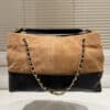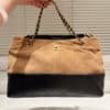 This Chanel Shopping bag features a sophisticated two-tone design crafted from premium quilted leather and suede, accented with the iconic CC logo and gold-tone chain detail. Designed with a roomy interior and comfortable top handle, it’s ideal for everyday wear while maintaining a refined luxury look. A timeless designer handbag, perfect for elevating casual and elegant outfits alike.