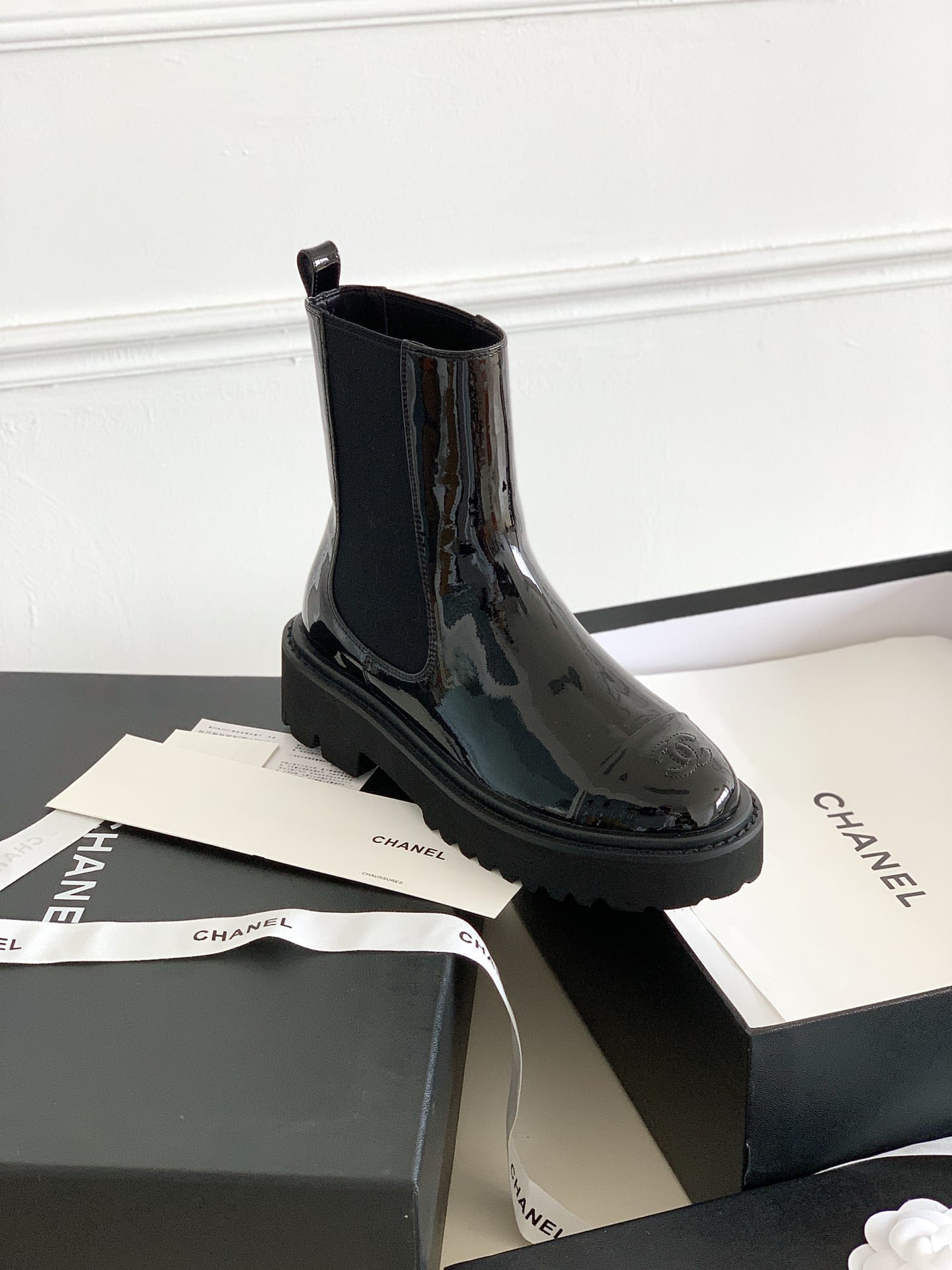 - Black leather