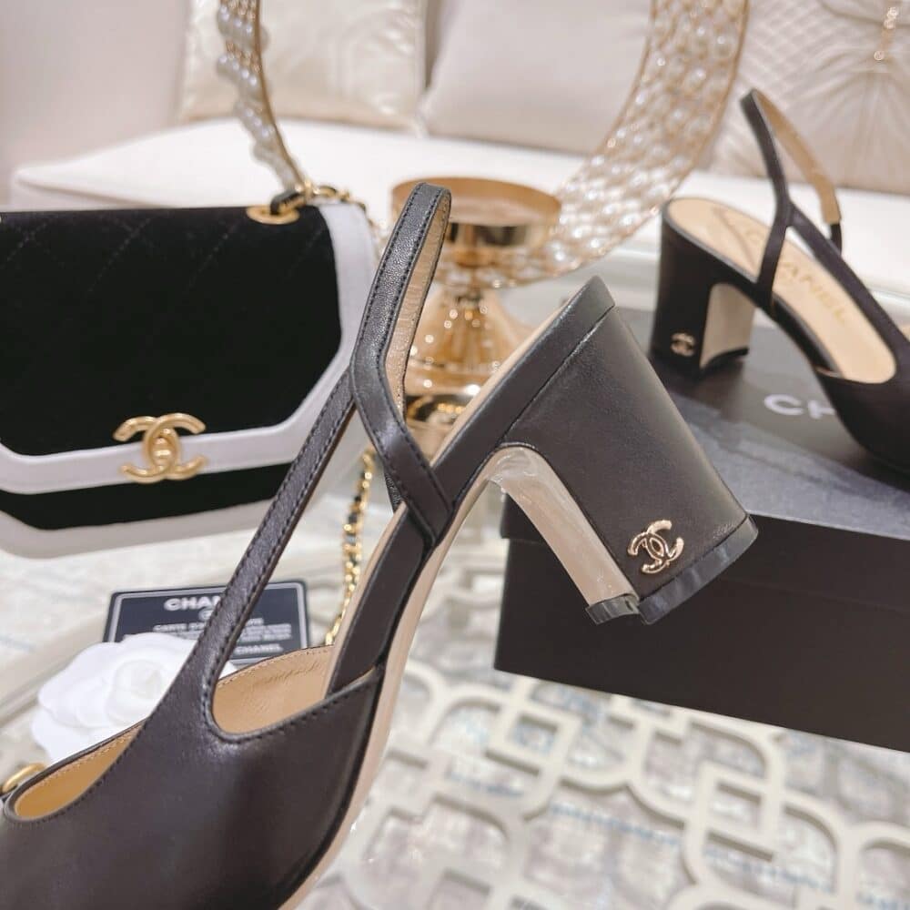 CHANEL SLINGBACKS GROSGRAIN BLACK G31318 Y50006 94305