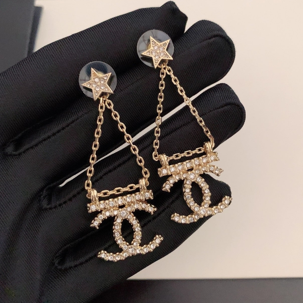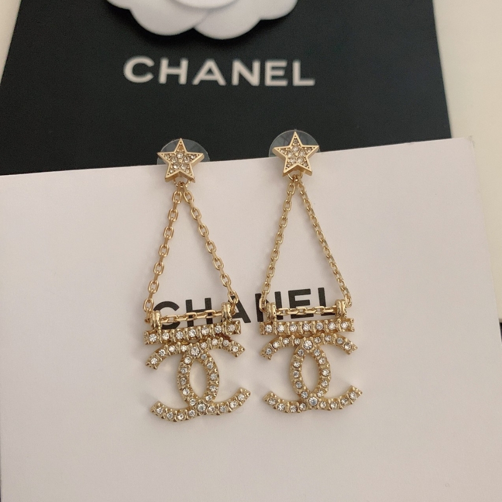 Chanel Gold Star Crystal Chain Bar Stud Dangle Drop Earrings AB8068 B07810 NH432