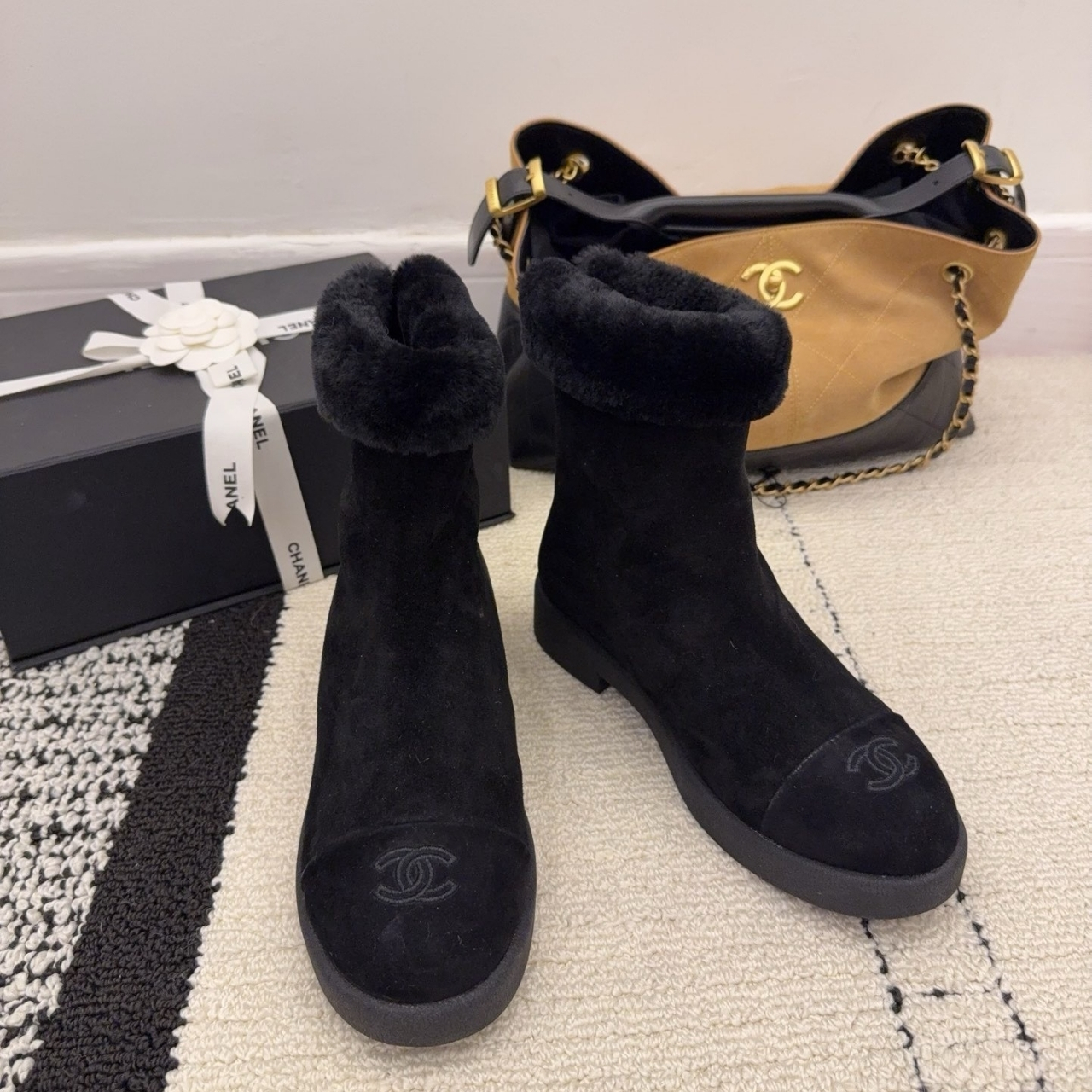 CHANEL SUEDE ANKLE BOOTS BLACK G45941 B17918 94035
