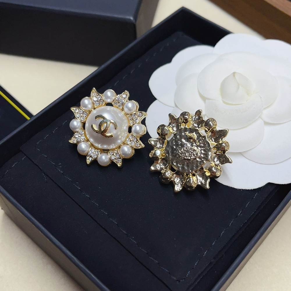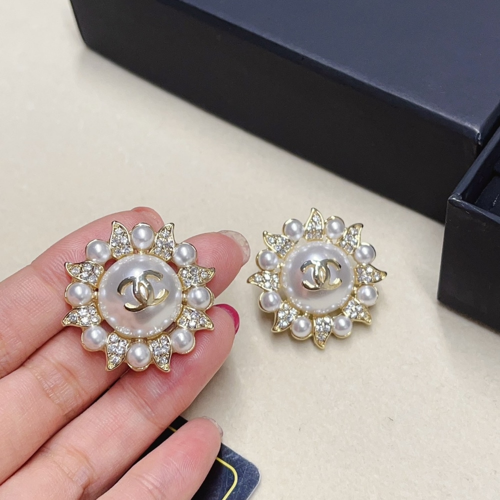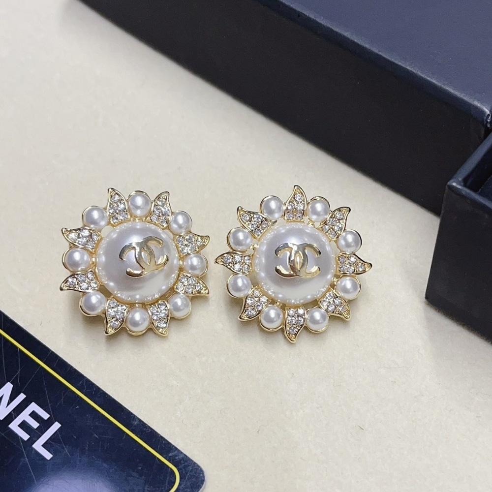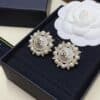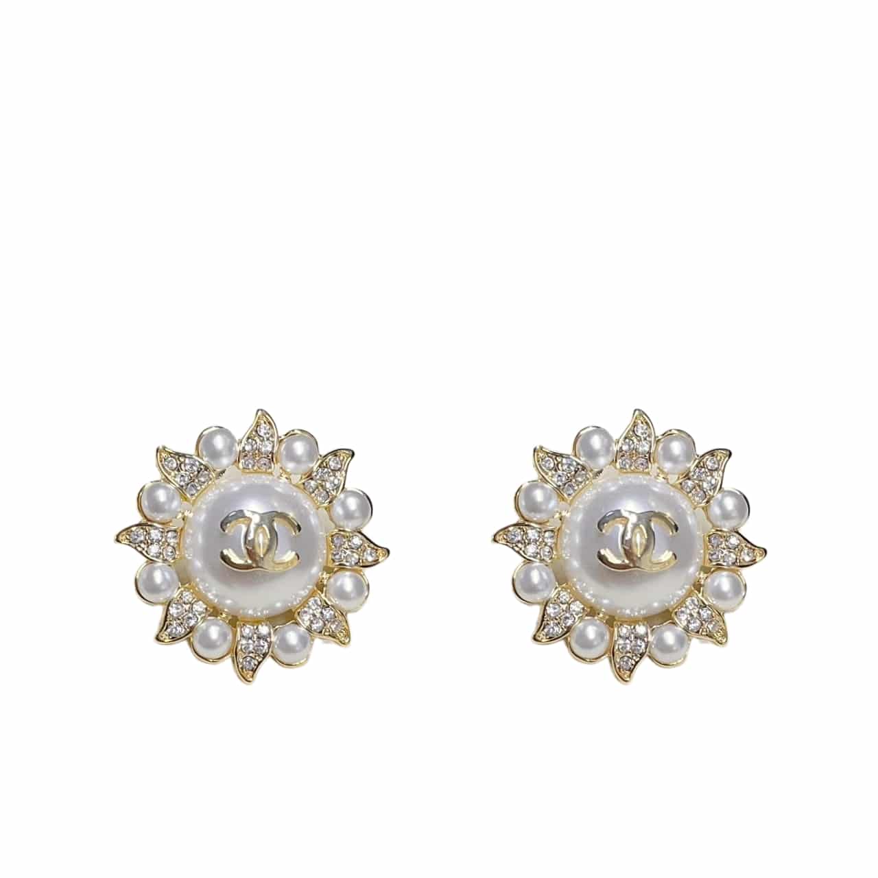 Chanel Sunburst Pearl And Crystal Earrings In Gold Tone