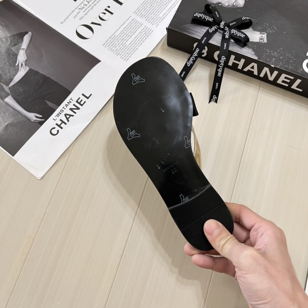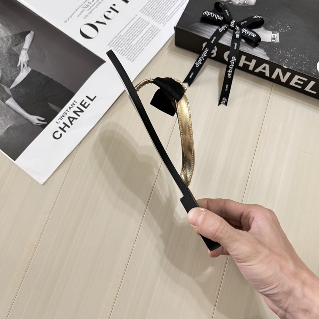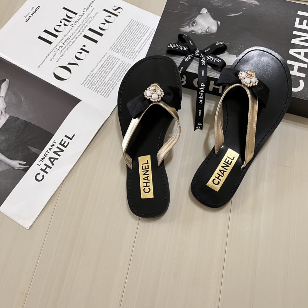 CHANEL THONG SLIDE WHITE CAMELLIA CC LOGO BOW BLACK