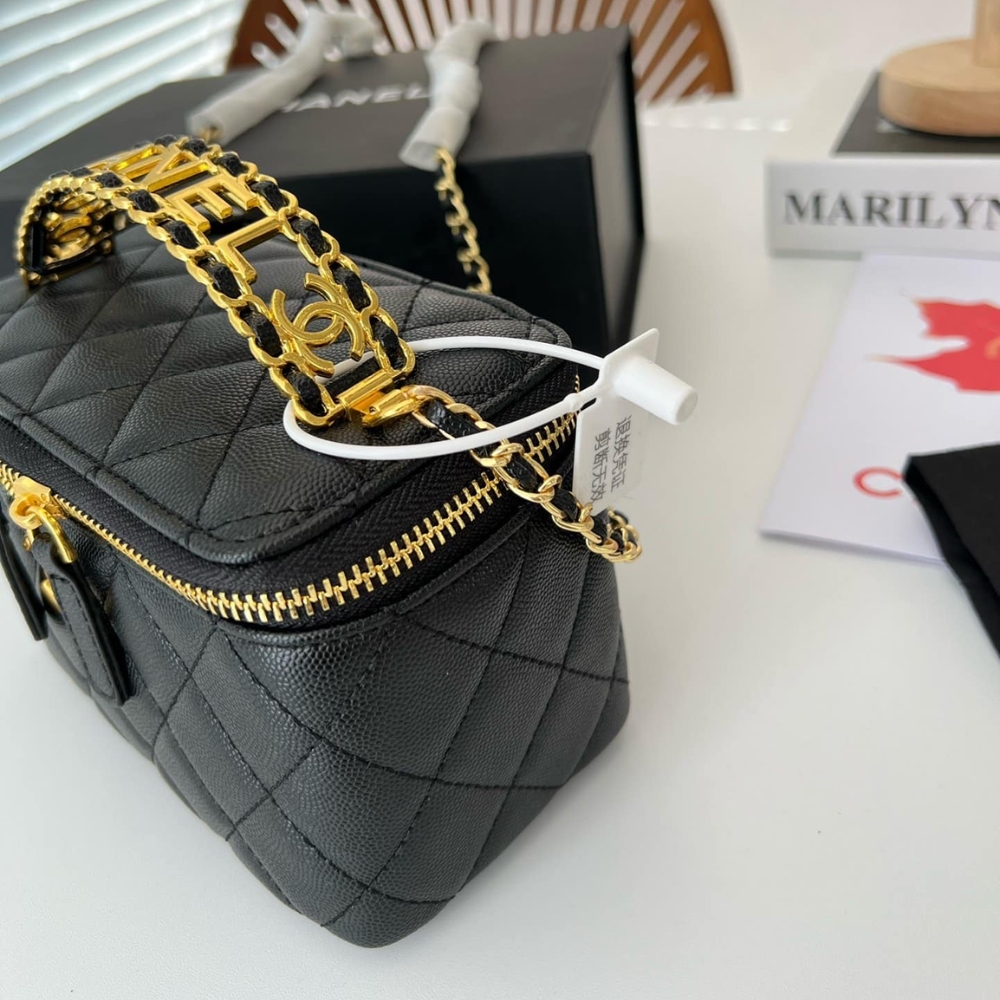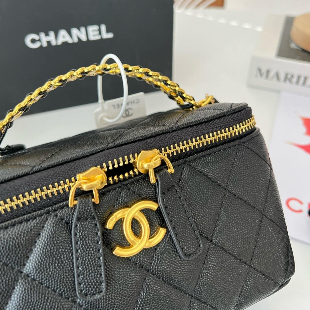 Chanel Top Handle Long Vanity Case With Chain / Black / 6.7 x 3.9 inches