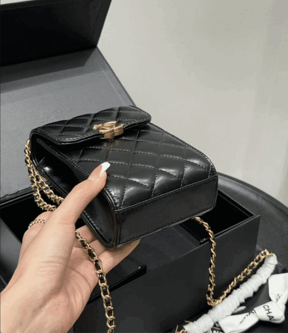 Chanel Trendy CC Phone Holder Quilted Crossbody Bags Black 17 cm / 6.7 inches