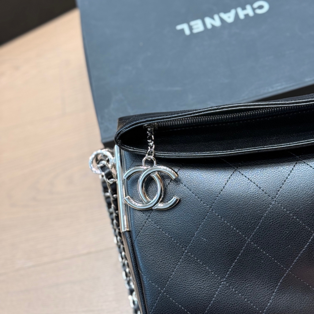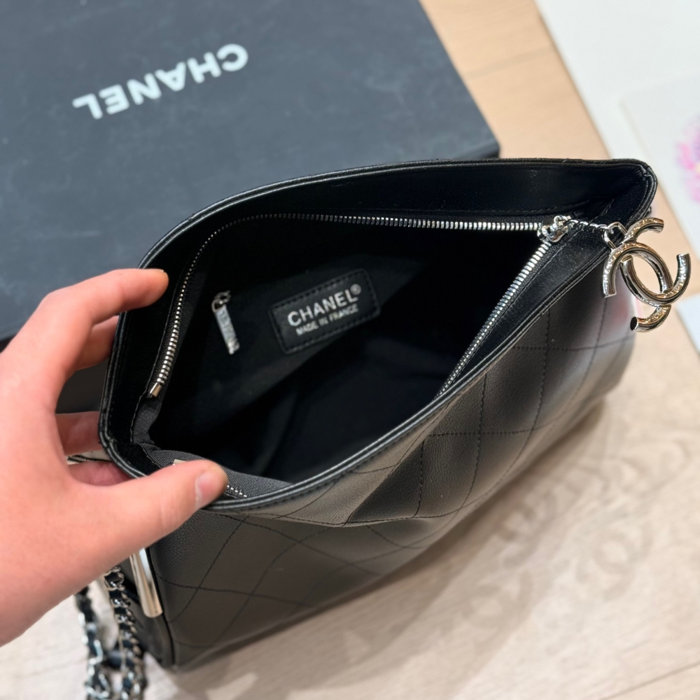 Chanel Ultimate Soft Hobo Bag / Leather / Black / 15.0 x 3.9 x 11.0 inches / Silver-toned hardware / Fits tablet, makeup pouch, long wallet, and documents / Spacious hobo bag