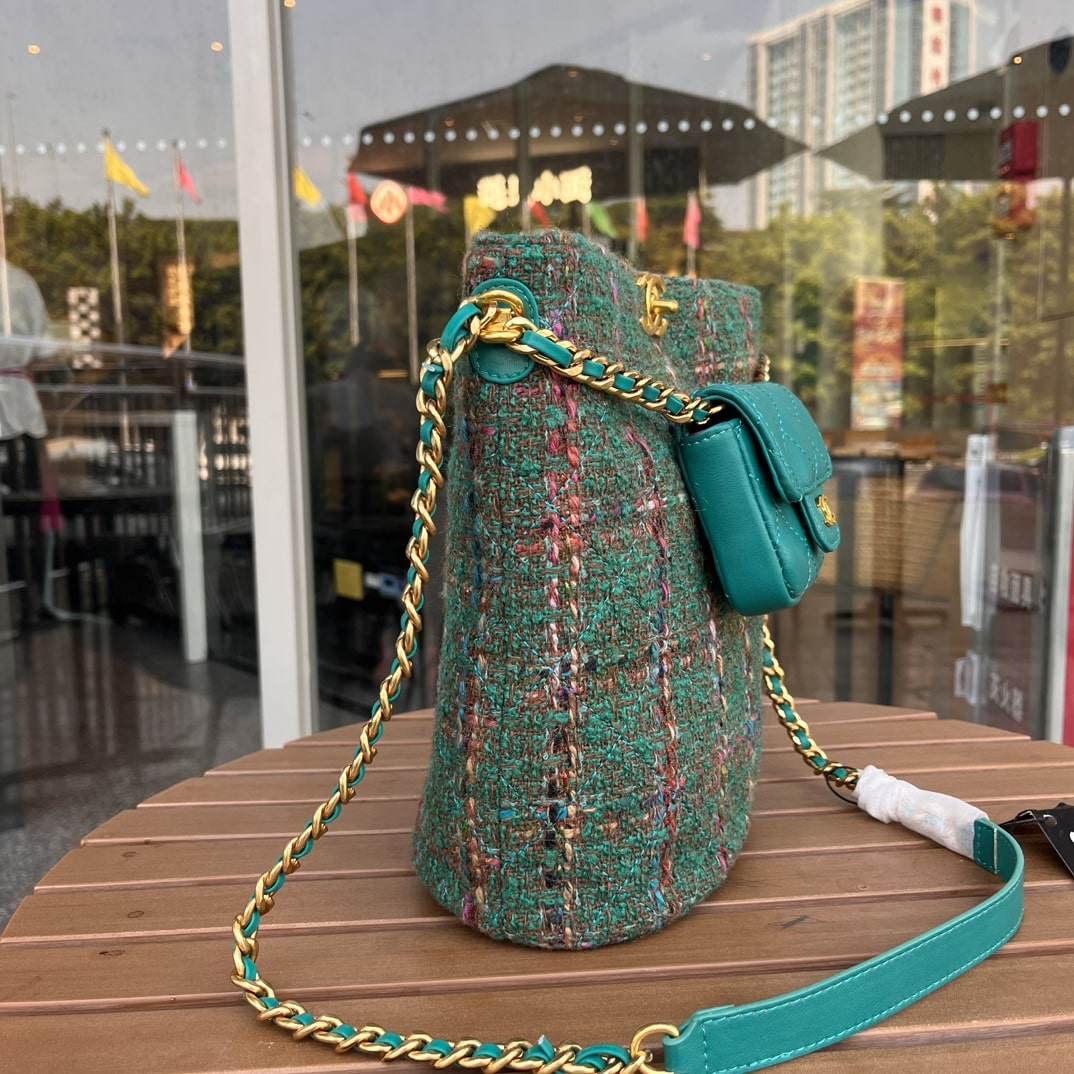 Chanel Unisex Blended Fabrics Plain Leather Logo Straw Bags 25cm