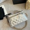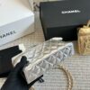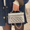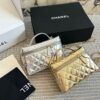The Chanel Vanity Case With Chain in Metallic Silver is a dazzling and structured accessory that merges the vintage charm of a travel vanity with modern evening elegance. This model is crafted from high-shine metallic leather, featuring the Maison’s signature diamond quilting and a prominent CC logo on the front.