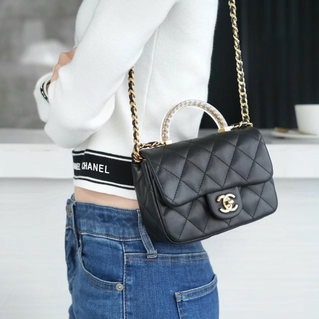 Chanel//Wallet On Chain And Resin With Gold Tone Metal//Black//20cm