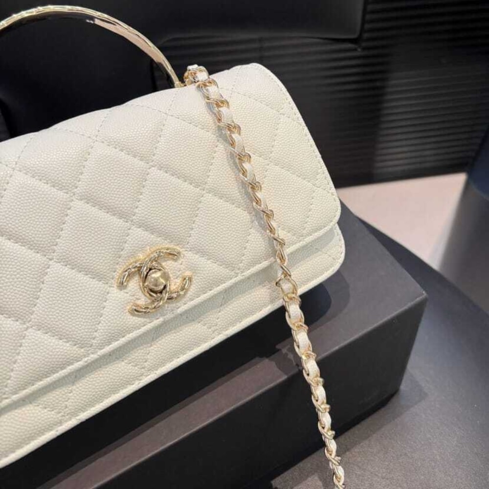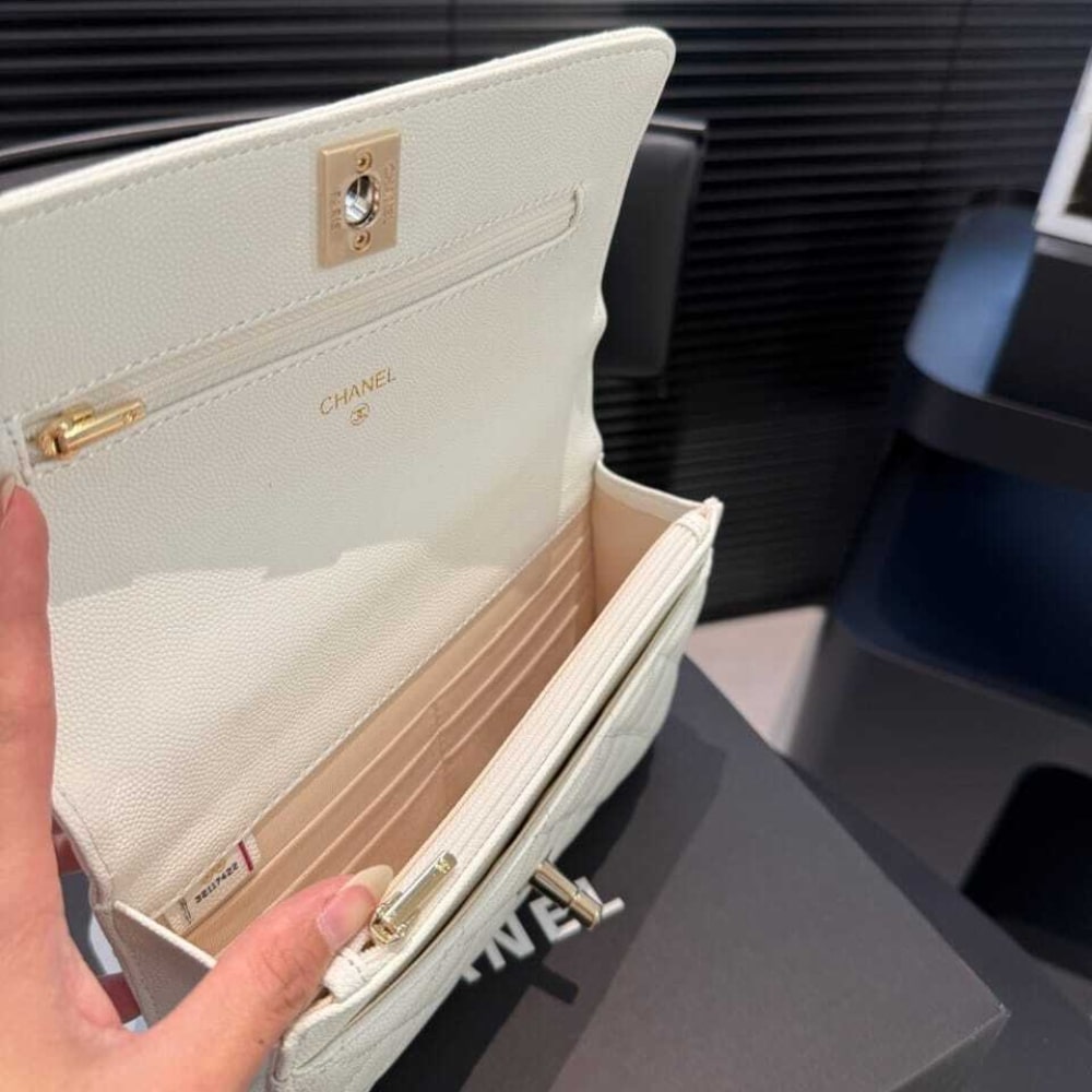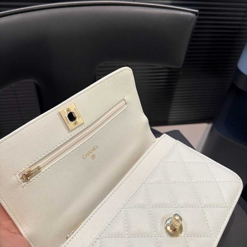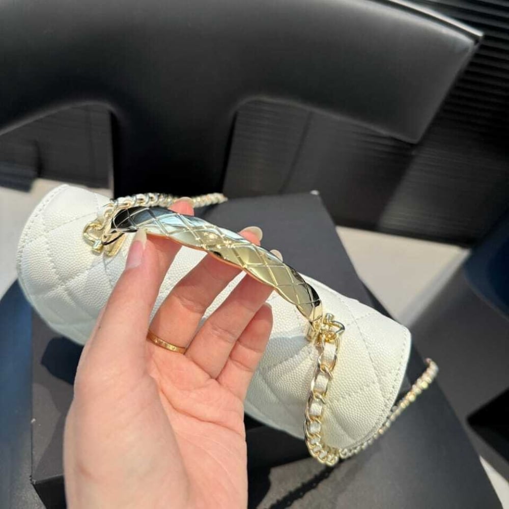 CHANEL CLUTCH WITH STRAP SHINY CRUMPLED WITH IMITATION PEARLS WHITE 20CM AP3803 B15603 10601