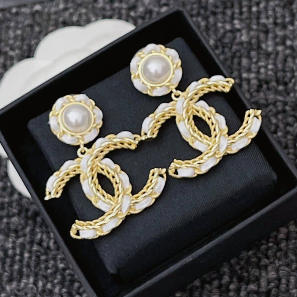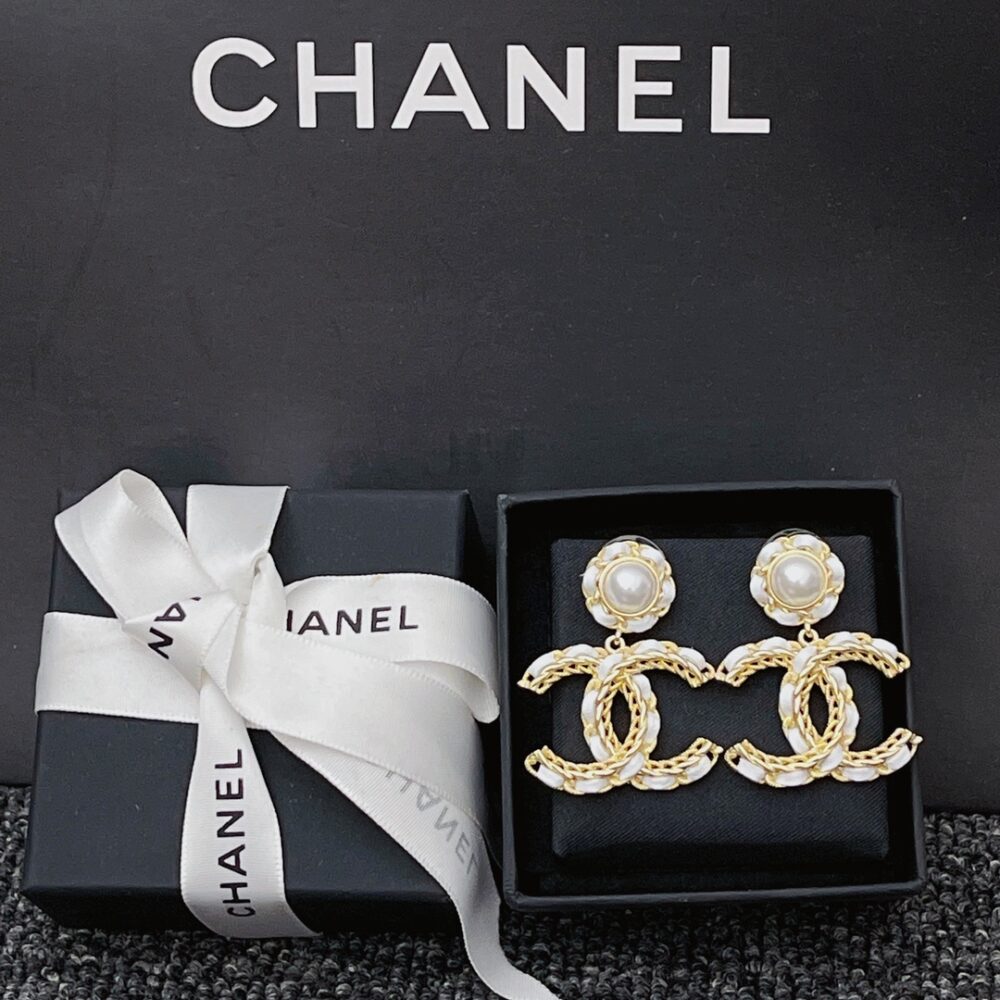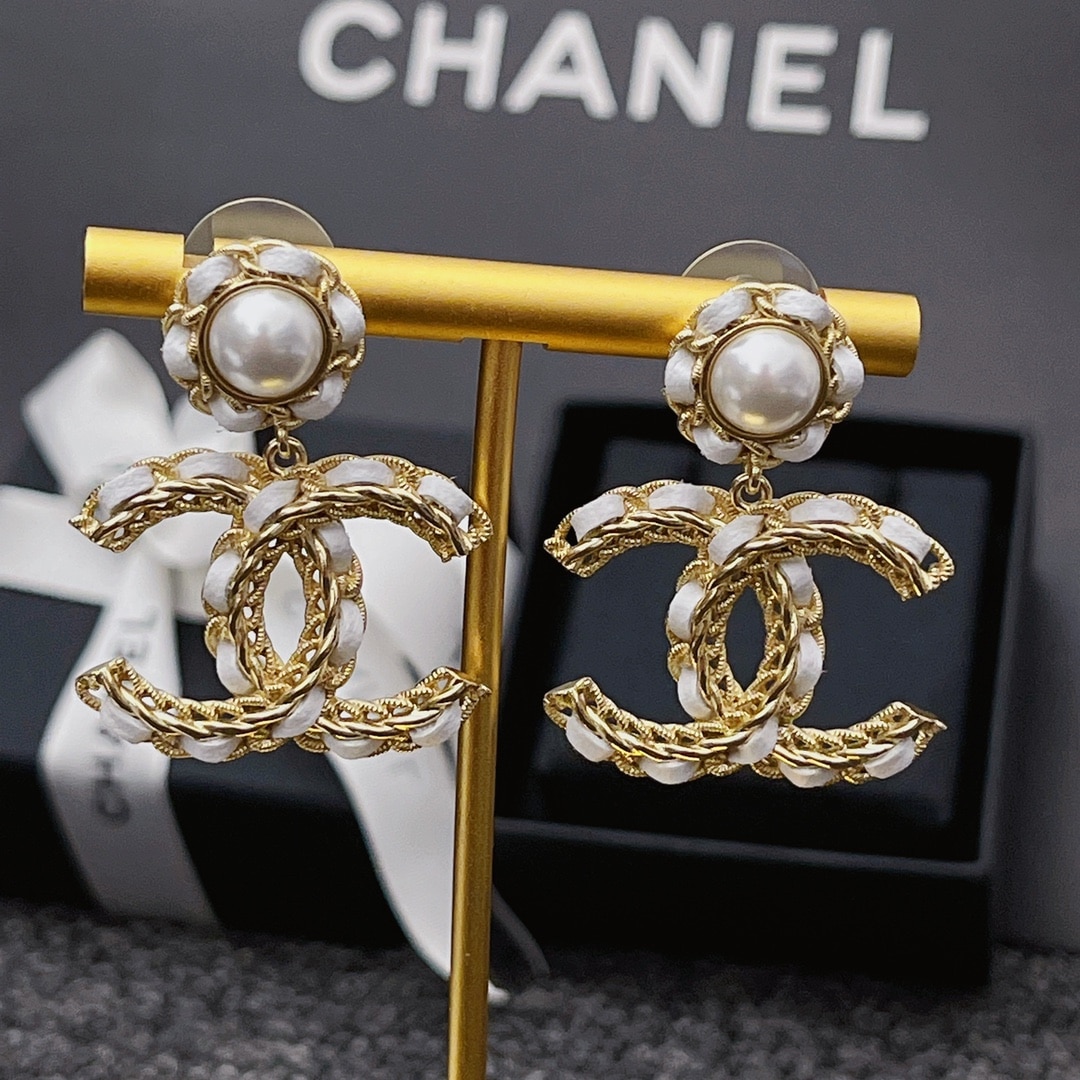 Chanel white metal and gold metal earrings