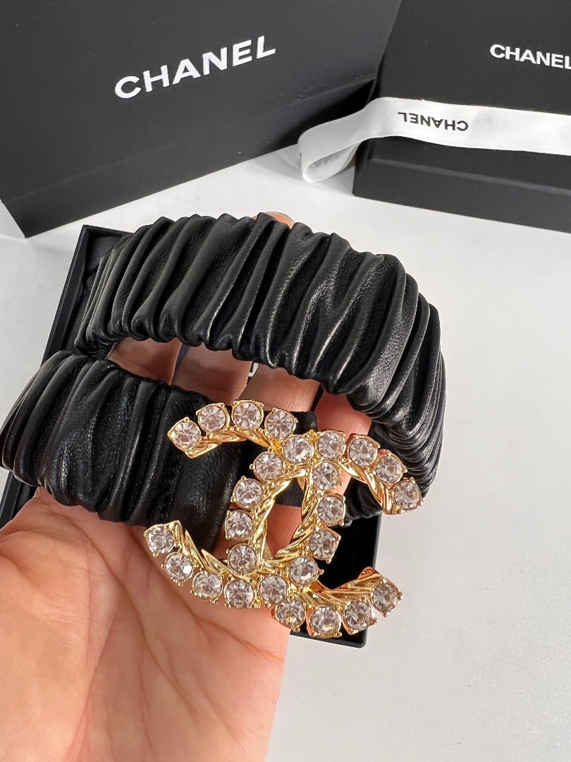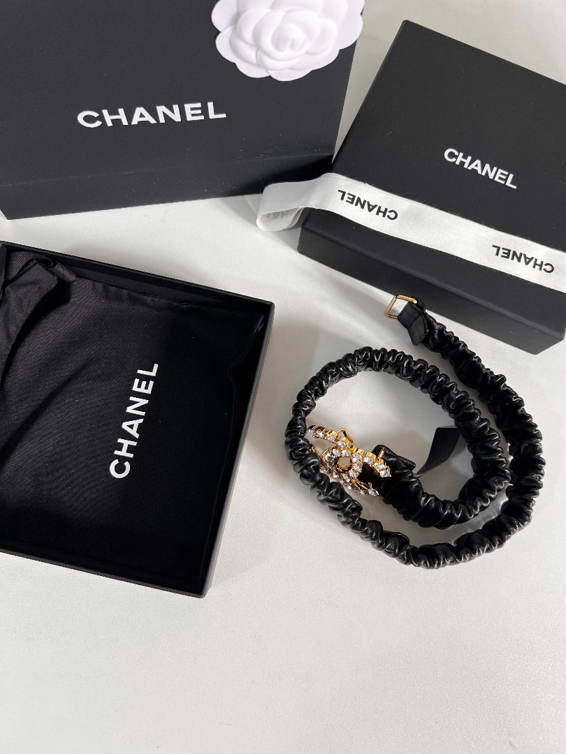 CHANEL WOMEN’S CC GOLD BELT WITH PEARLS 30MM