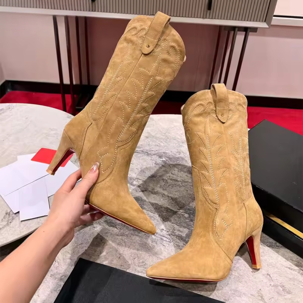 - Red sole completes the sophisticated look of this eye-catching boot