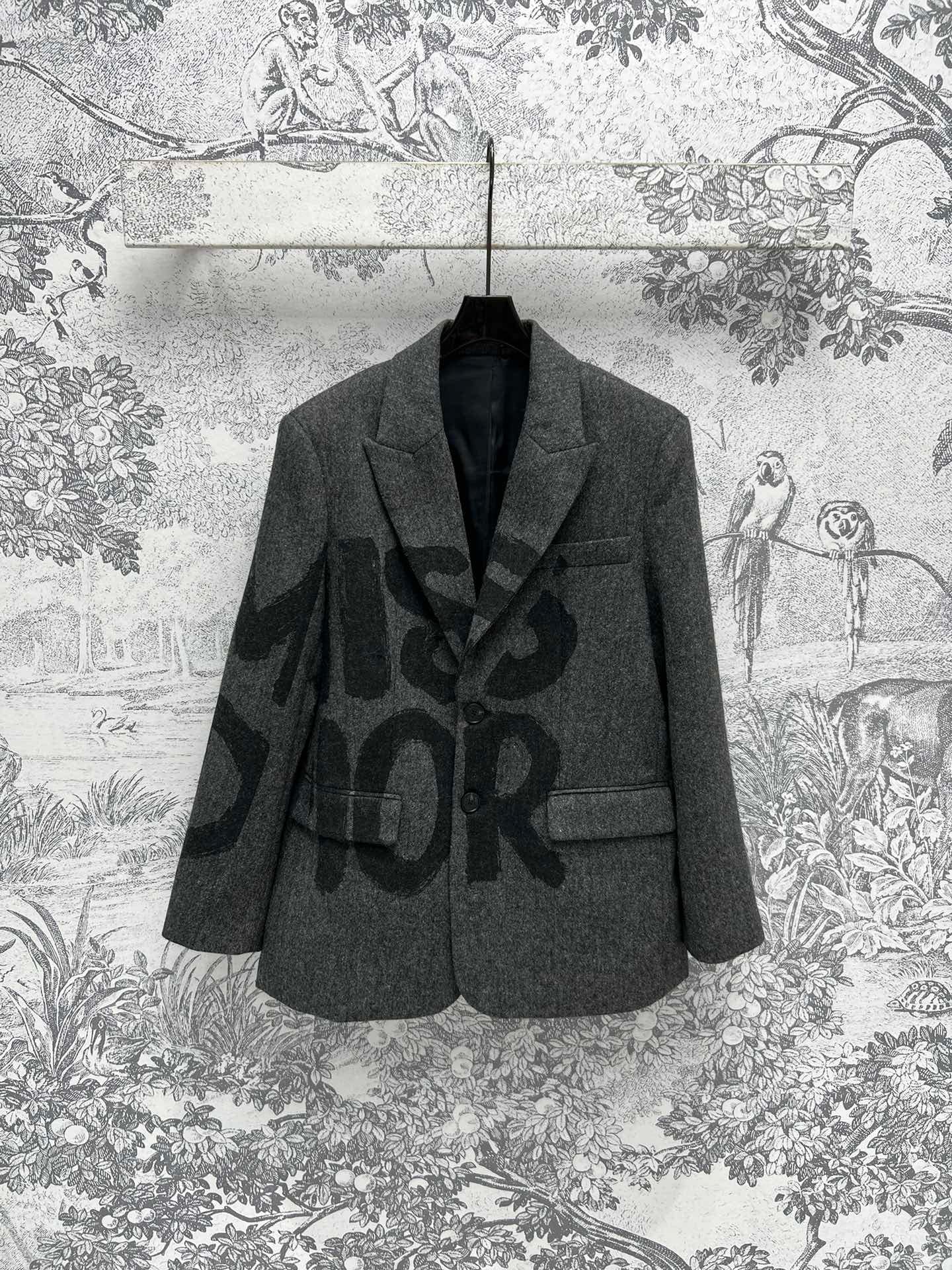Dior Blazer With Black Miss Dior Graffiti Motif Grey 451V18P1186 X9902