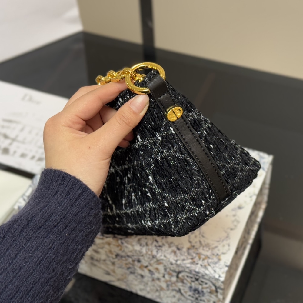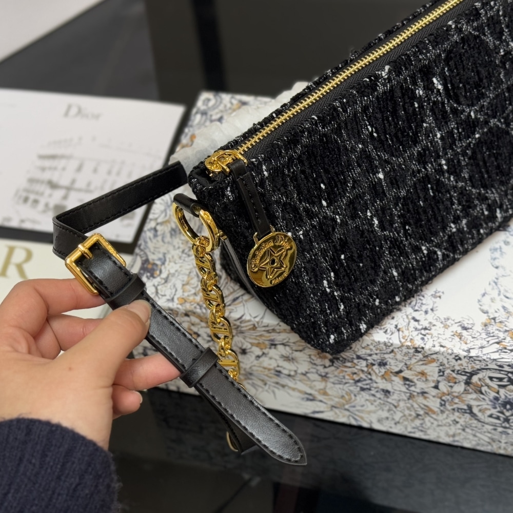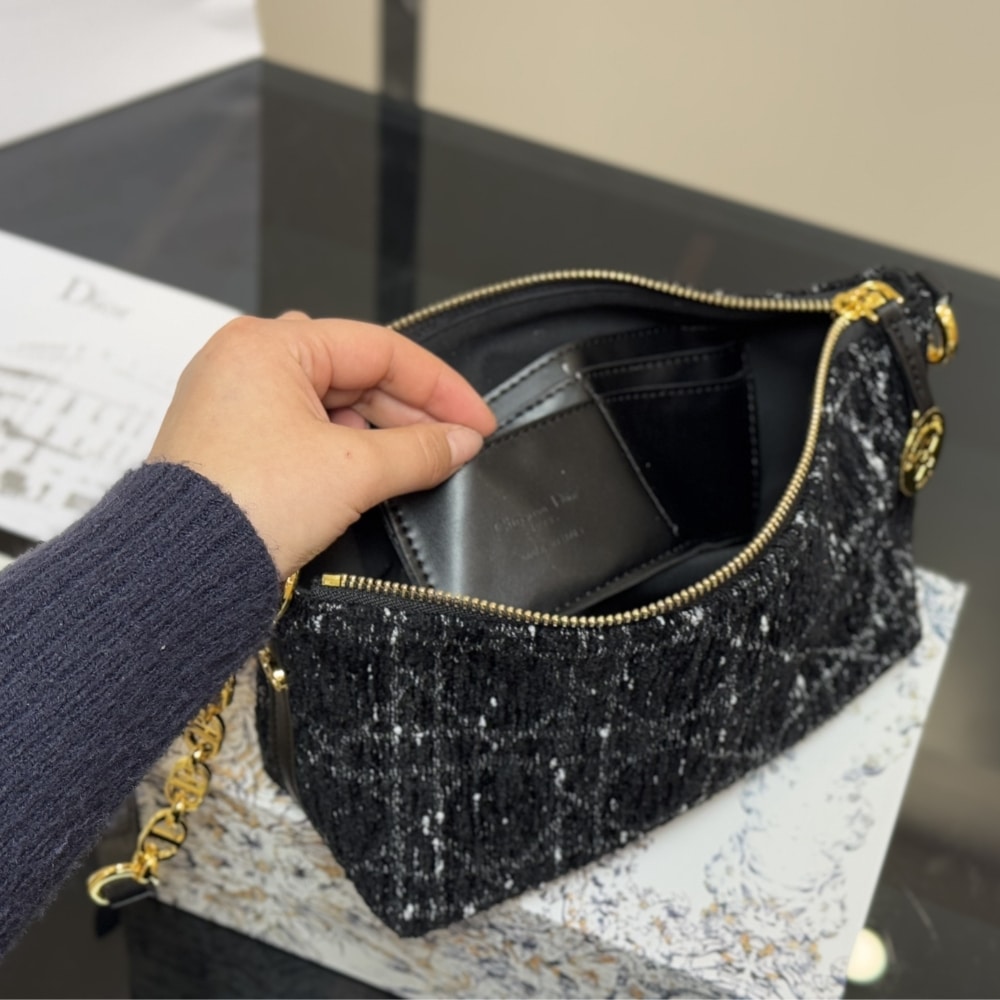 Dior Diorstar Hobo Bag With Chain Black Tweed S3202UDIO M197/ 22 cm / 7.9 inches