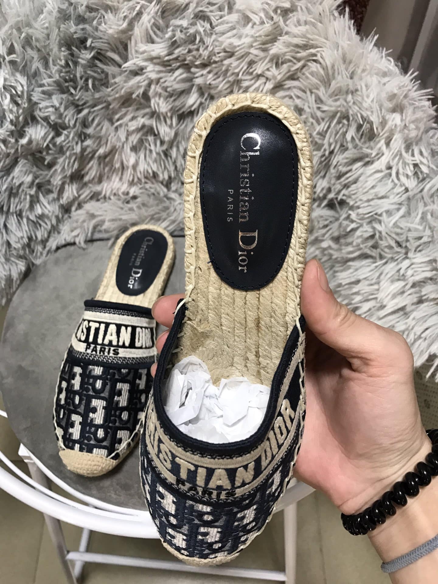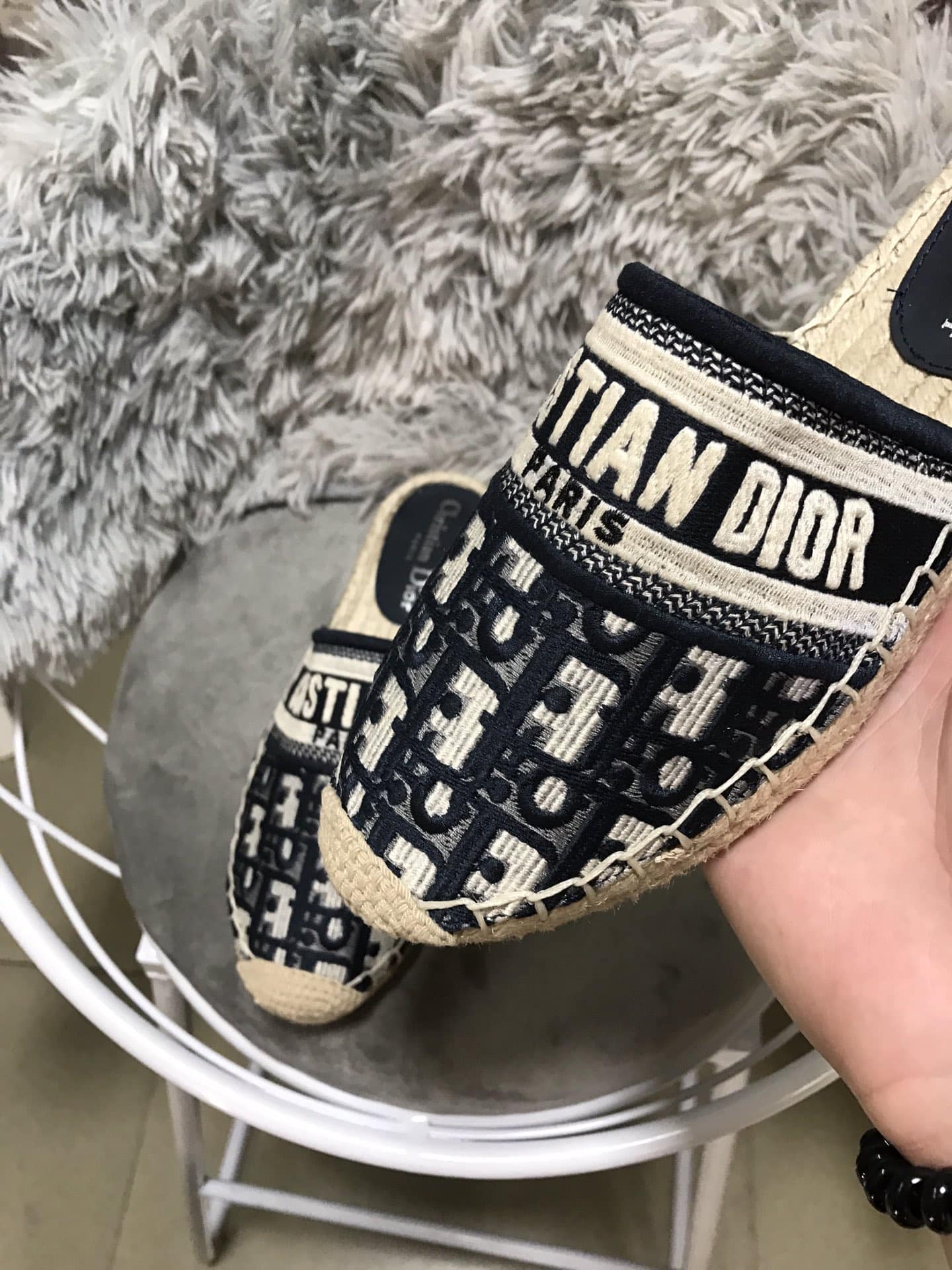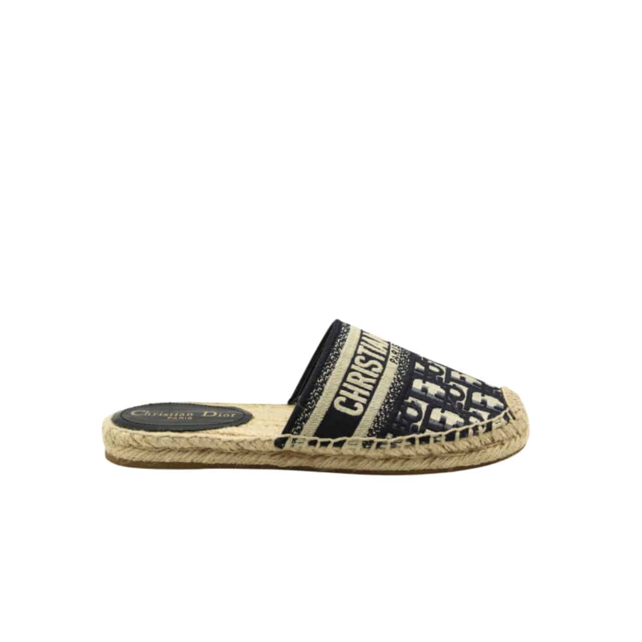 DIOR GRANVILLE OBLIQUE ESPADRILLE COTTON FLATS IN BLACK